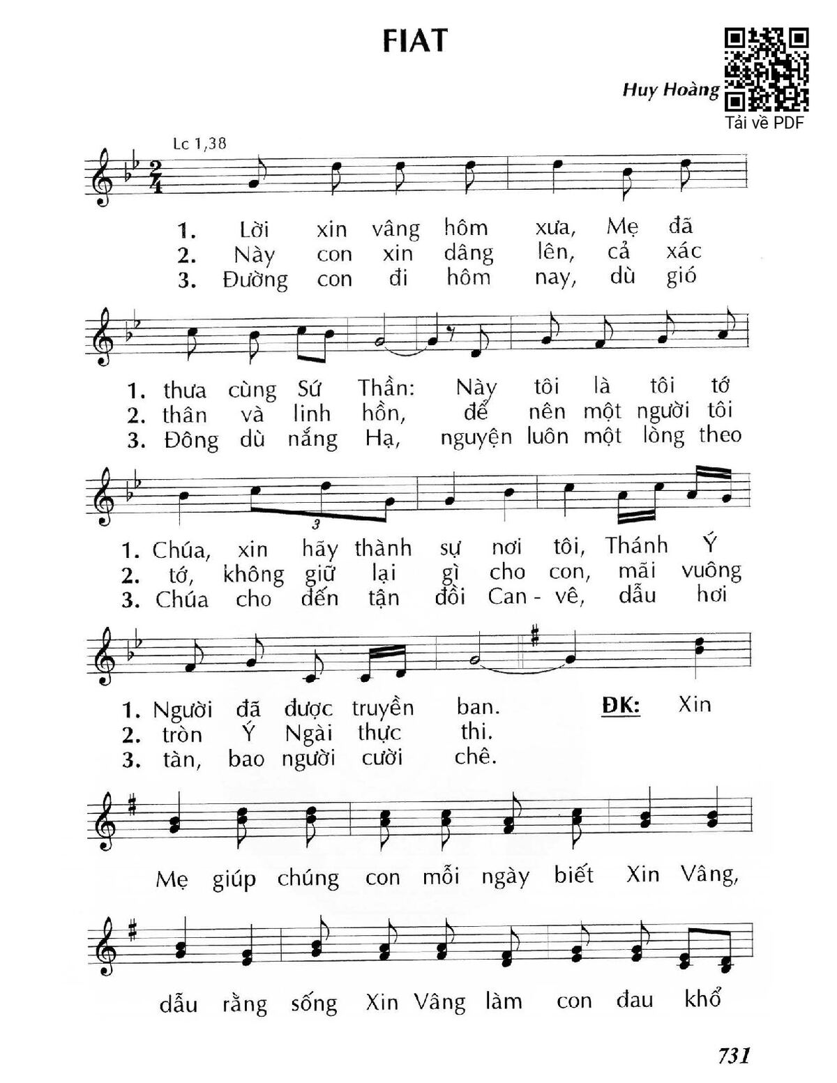 Sheet nhạc có nốt Fiat của nhạc sĩ Huy Hoàng và file PDF nốt nhạc đăng lên đây nhằm giúp các bạn xướng âm cho đúng nốt và hát thêm hay, chỉ mang tính chất tham khảo, không có mục đích thương mại. Bản quyền thuộc về tác giả và tổ chức nắm bản quyền, Truongca.com không giữ bất kỳ bản quyền của nội dung nào cả. Các bạn có thể tải về bản PDF chất lượng cao, gồm khuông nhạc có nốt với đường link file PDF bên trên.