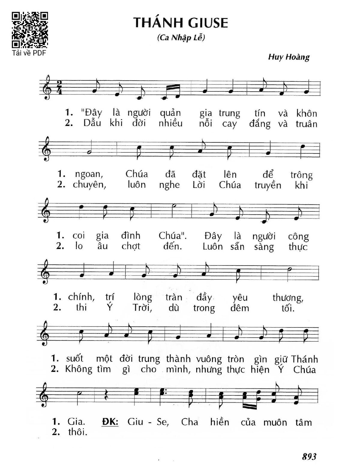 Sheet nhạc có nốt Thánh Giuse của nhạc sĩ Huy Hoàng và file PDF nốt nhạc đăng lên đây nhằm giúp các bạn xướng âm cho đúng nốt và hát thêm hay, chỉ mang tính chất tham khảo, không có mục đích thương mại. Bản quyền thuộc về tác giả và tổ chức nắm bản quyền, Truongca.com không giữ bất kỳ bản quyền của nội dung nào cả. Các bạn có thể tải về bản PDF chất lượng cao, gồm khuông nhạc có nốt với đường link file PDF bên trên.