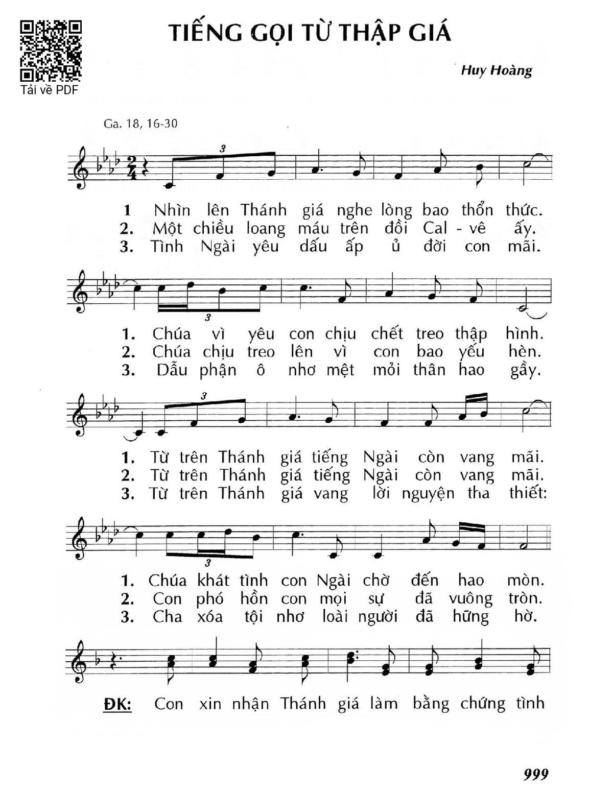 Sheet nhạc có nốt Tiếng gọi từ Thập giá của nhạc sĩ Huy Hoàng và file PDF nốt nhạc đăng lên đây nhằm giúp các bạn xướng âm cho đúng nốt và hát thêm hay, chỉ mang tính chất tham khảo, không có mục đích thương mại. Bản quyền thuộc về tác giả và tổ chức nắm bản quyền, Truongca.com không giữ bất kỳ bản quyền của nội dung nào cả. Các bạn có thể tải về bản PDF chất lượng cao, gồm khuông nhạc có nốt với đường link file PDF bên trên.