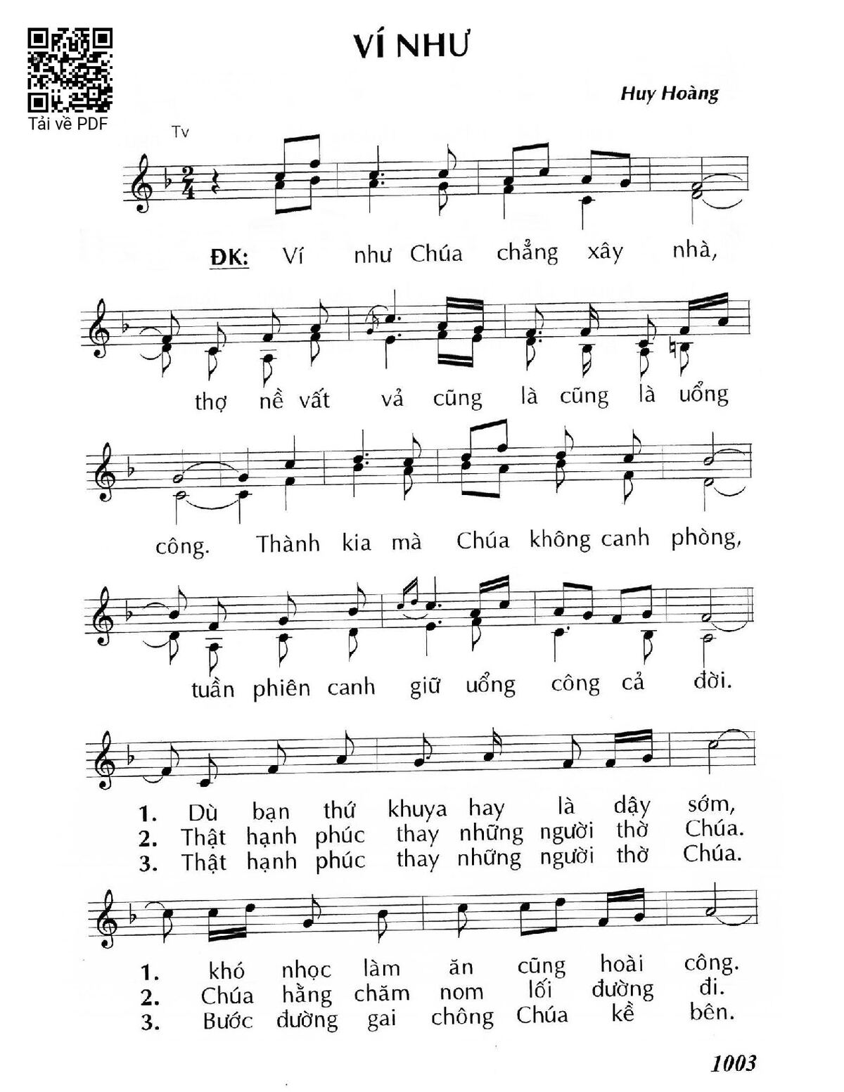 Sheet nhạc có nốt Ví như của nhạc sĩ Huy Hoàng và file PDF nốt nhạc đăng lên đây nhằm giúp các bạn xướng âm cho đúng nốt và hát thêm hay, chỉ mang tính chất tham khảo, không có mục đích thương mại. Bản quyền thuộc về tác giả và tổ chức nắm bản quyền, Truongca.com không giữ bất kỳ bản quyền của nội dung nào cả. Các bạn có thể tải về bản PDF chất lượng cao, gồm khuông nhạc có nốt với đường link file PDF bên trên.