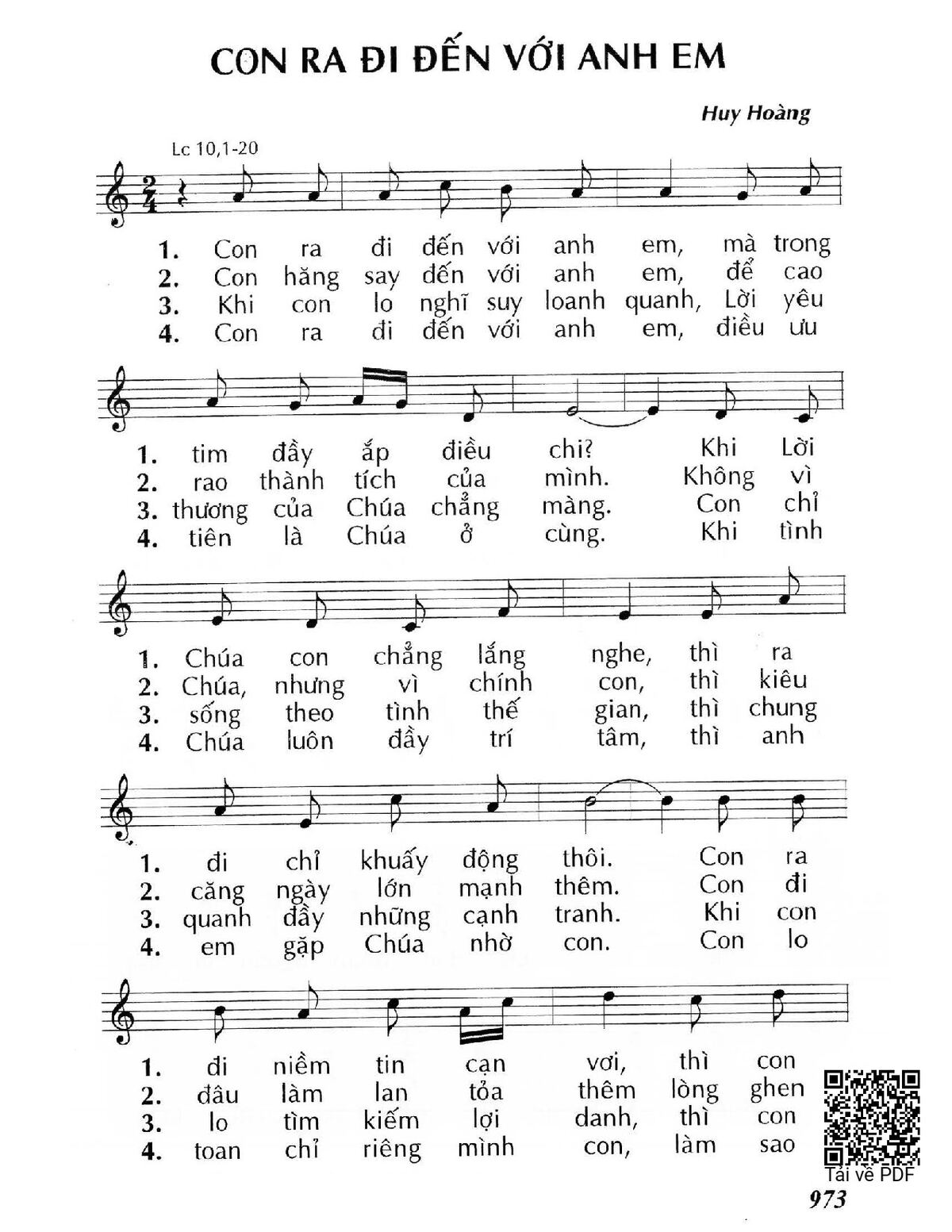 Trang 1 của Sheet nhạc PDF bài hát Con ra đi đến với anh em (Lc 10,1-20) - Huy Hoàng