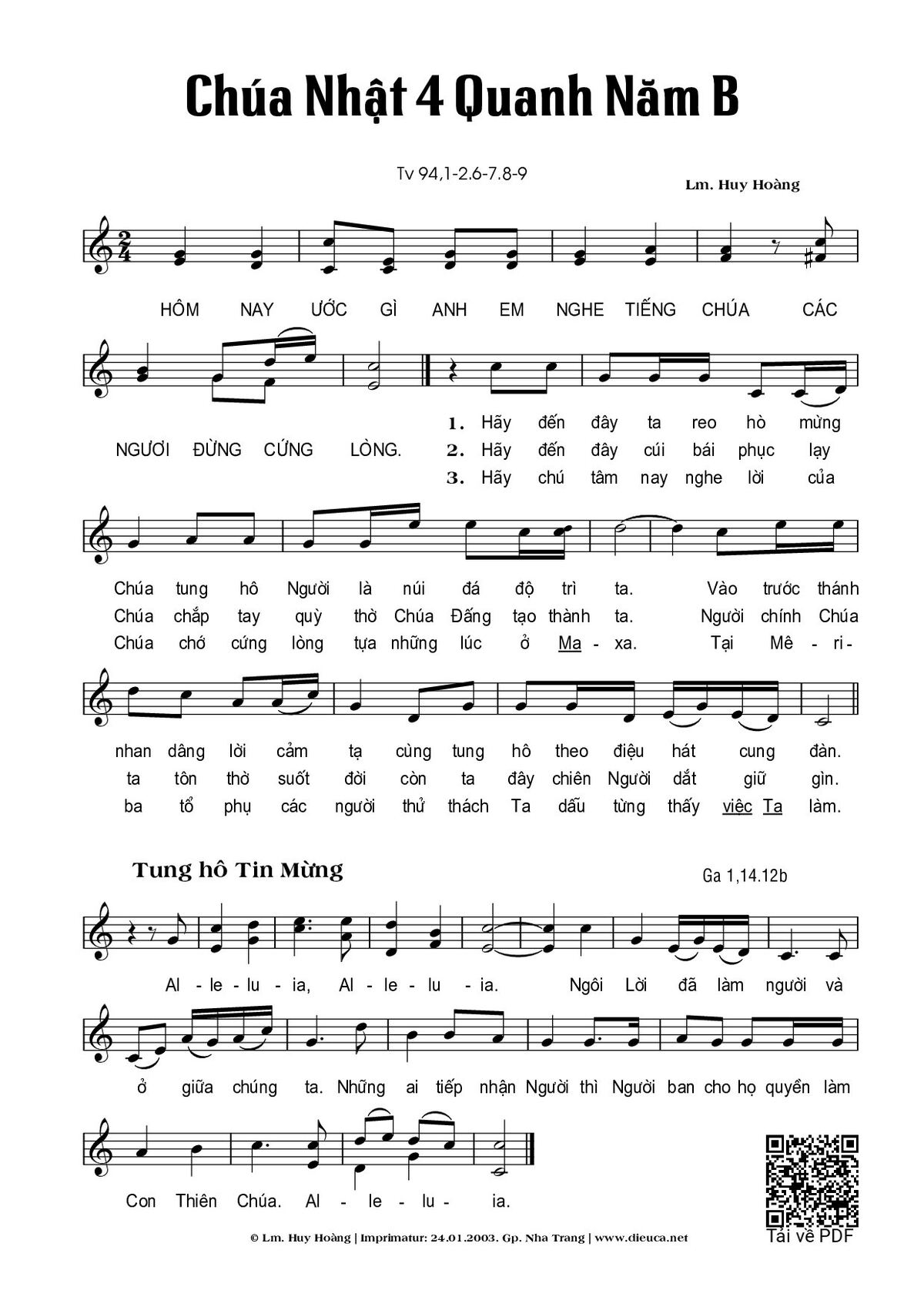 Sheet Chúa Nhật 4B Thường Niên (Thánh Vịnh 94) PDF, hợp âm