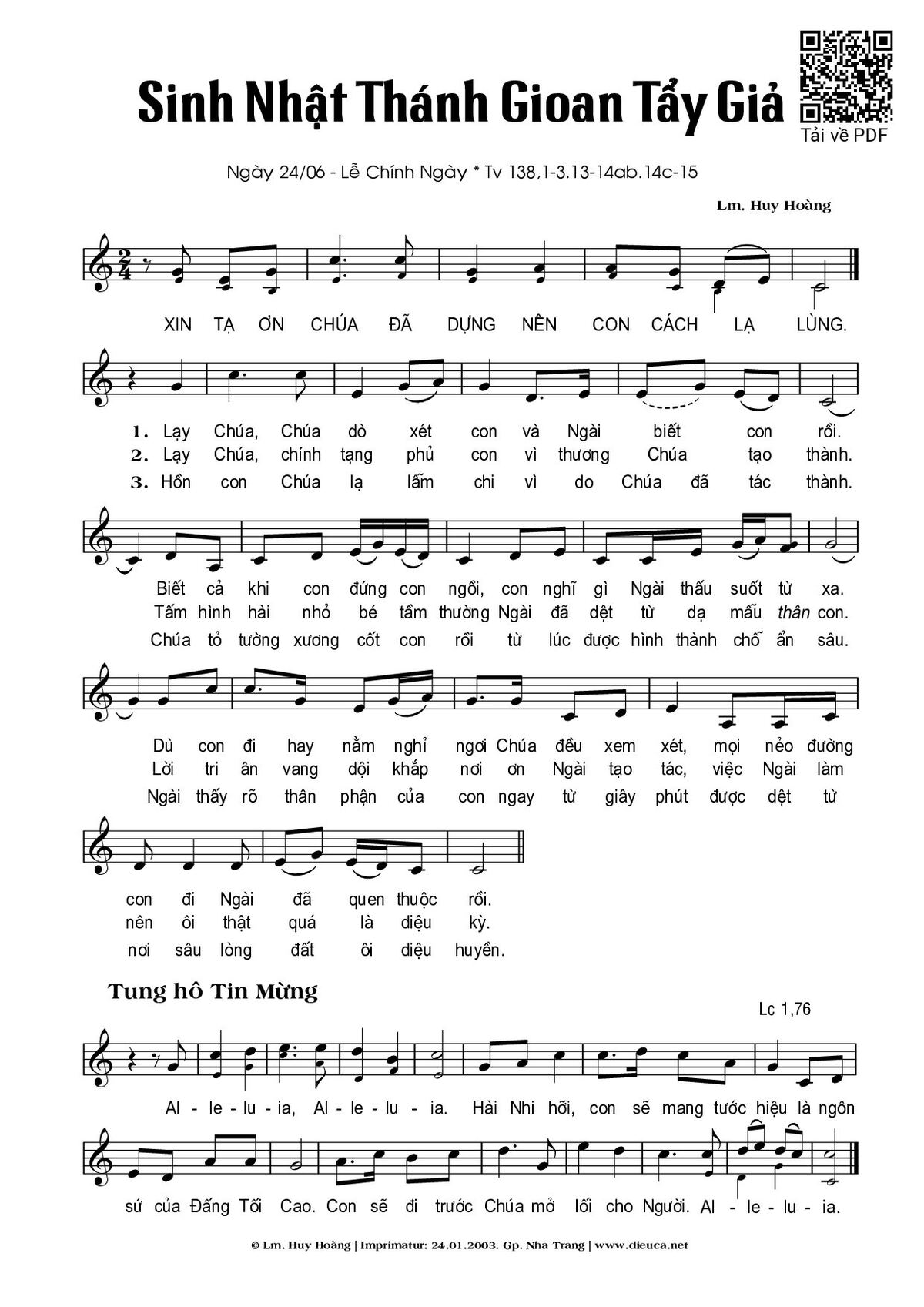 Trang 1 của Sheet nhạc PDF bài hát Lễ Thánh Gioan Tẩy Giả (24.06) - Huy Hoàng