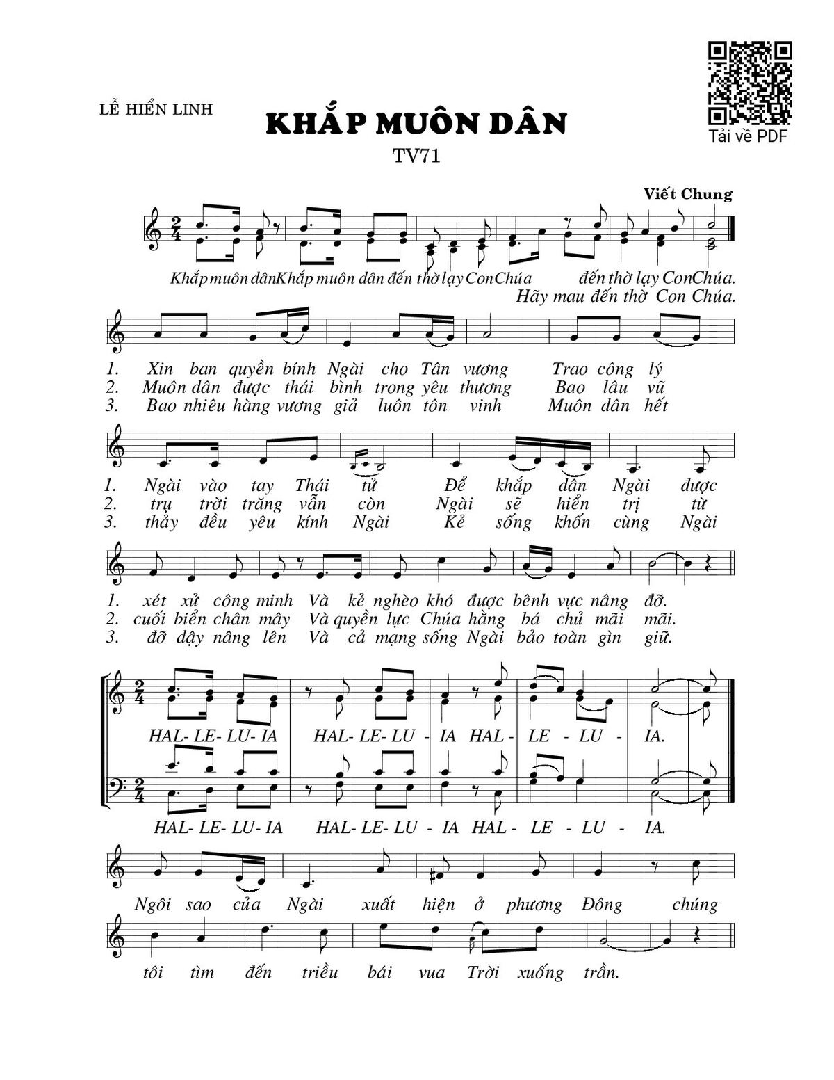 Trang 1 của Sheet nhạc PDF bài hát Khắp muôn dân 2 (Thánh Vịnh 71) - Viết Chung