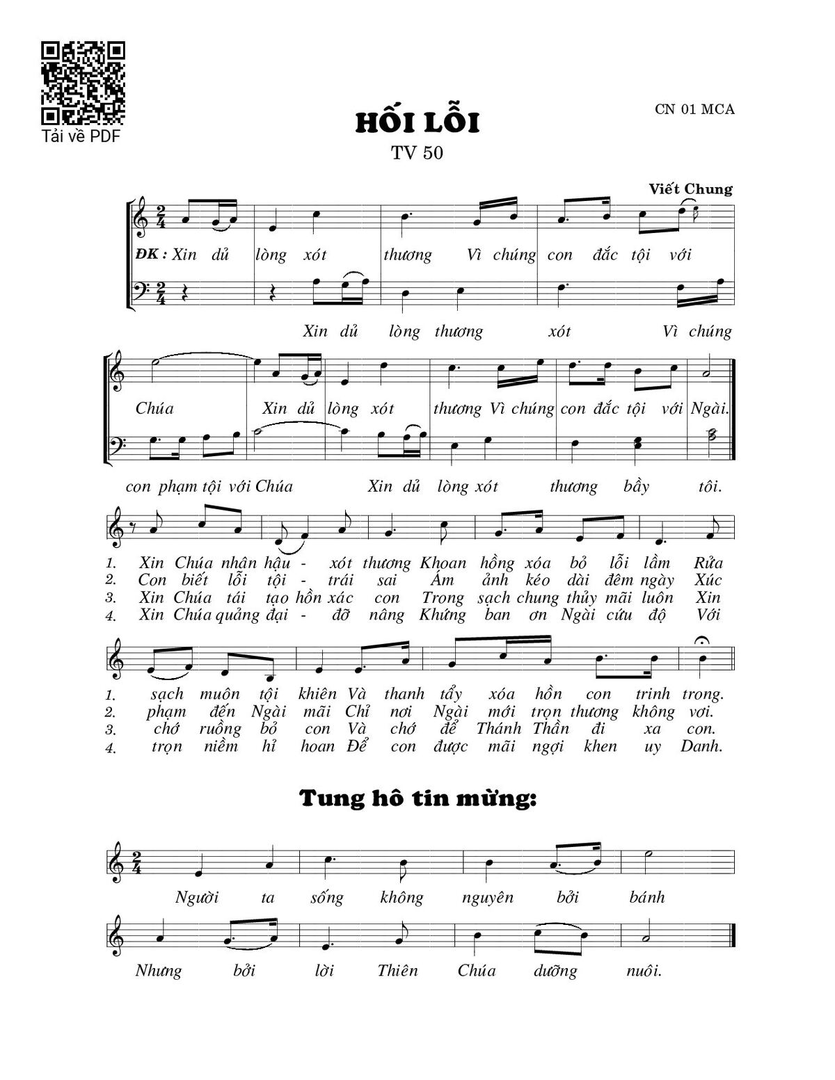 Trang 1 của Sheet nhạc PDF bài hát Hối lỗi (Thánh Vịnh 50) - Viết Chung