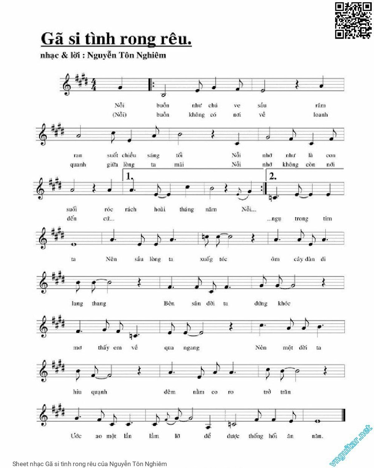 Nguyễn Tôn Nghiêm Nỗi buồn như chú ve sầu Râm ran suốt chiều sáng tối [PDF] [Sheet] [Lời H.A] [Mp4/Midi]