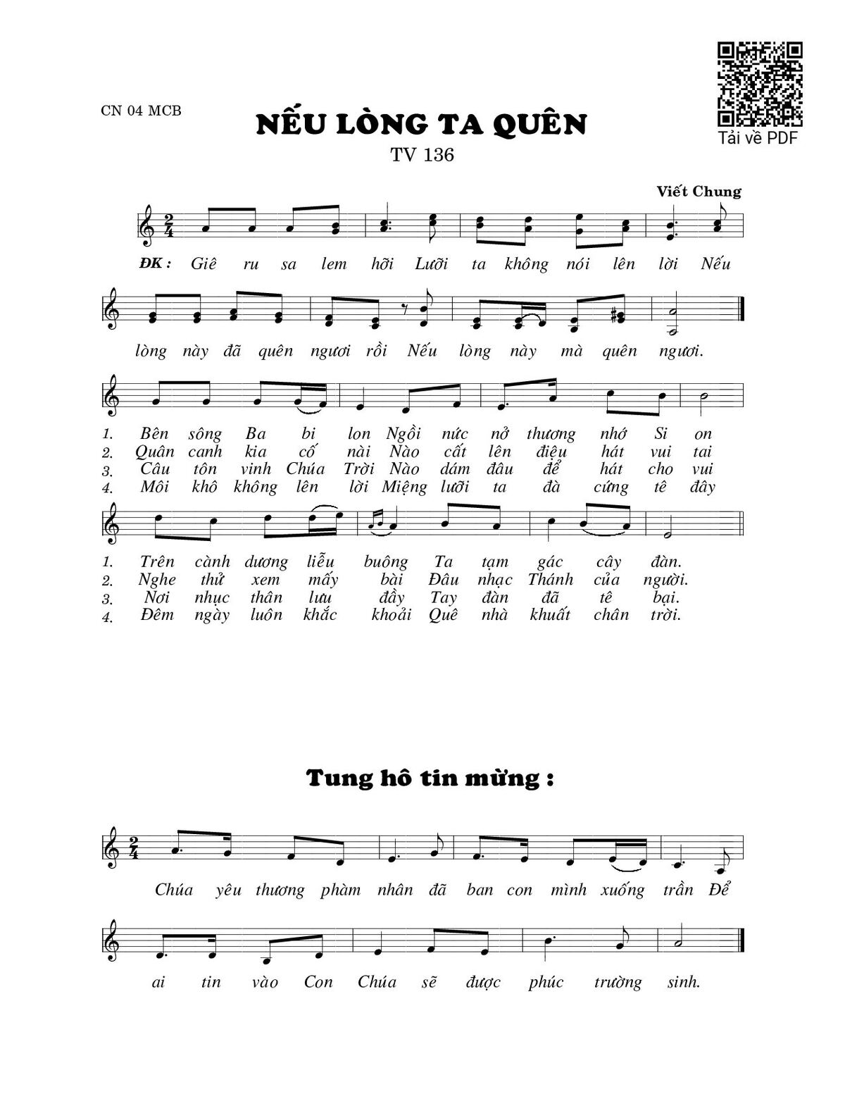 Sheet Nếu lòng ta quên (Thánh Vịnh 136) PDF, hợp âm