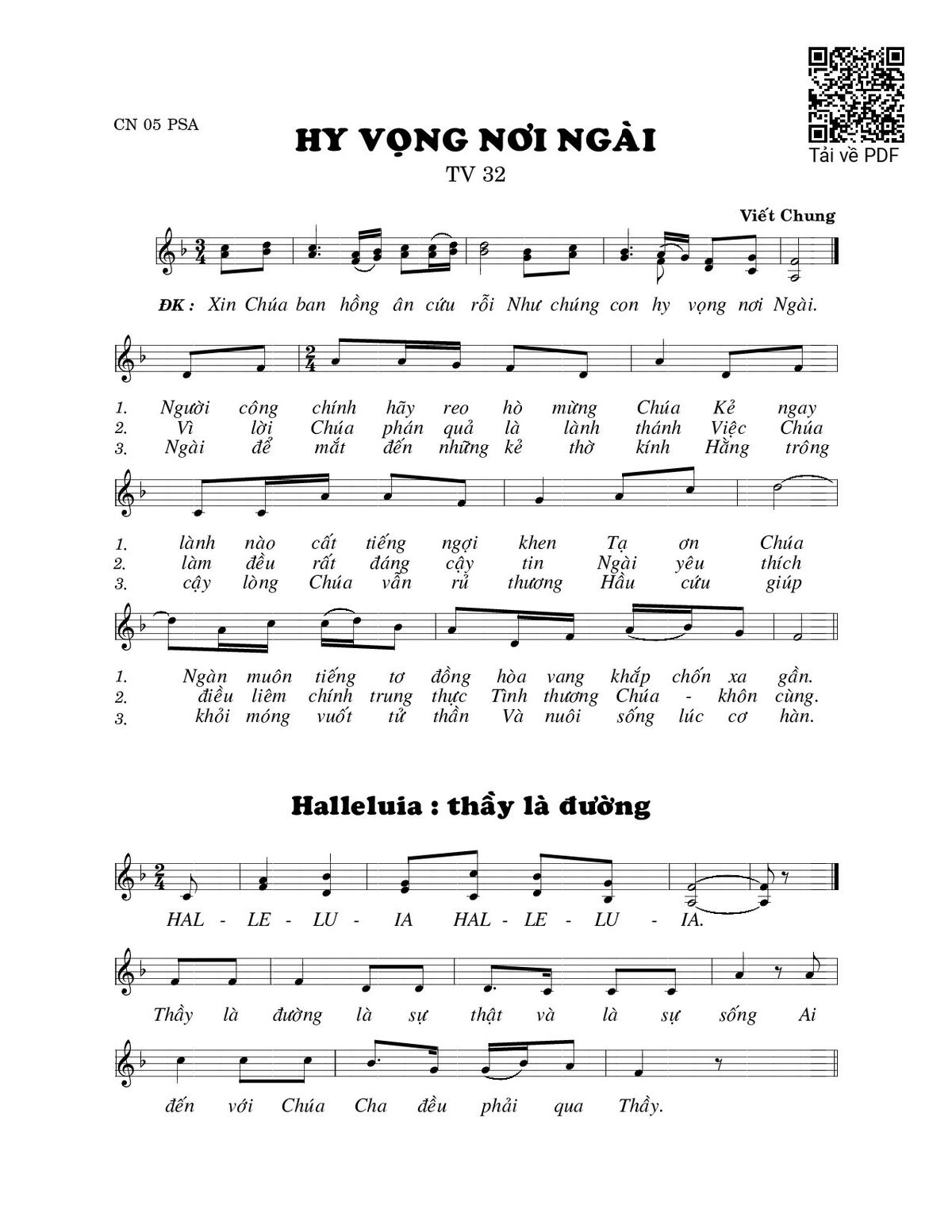 Các sheet PDF tương tự Hy vọng nơi Ngài (Thánh Vịnh 32):