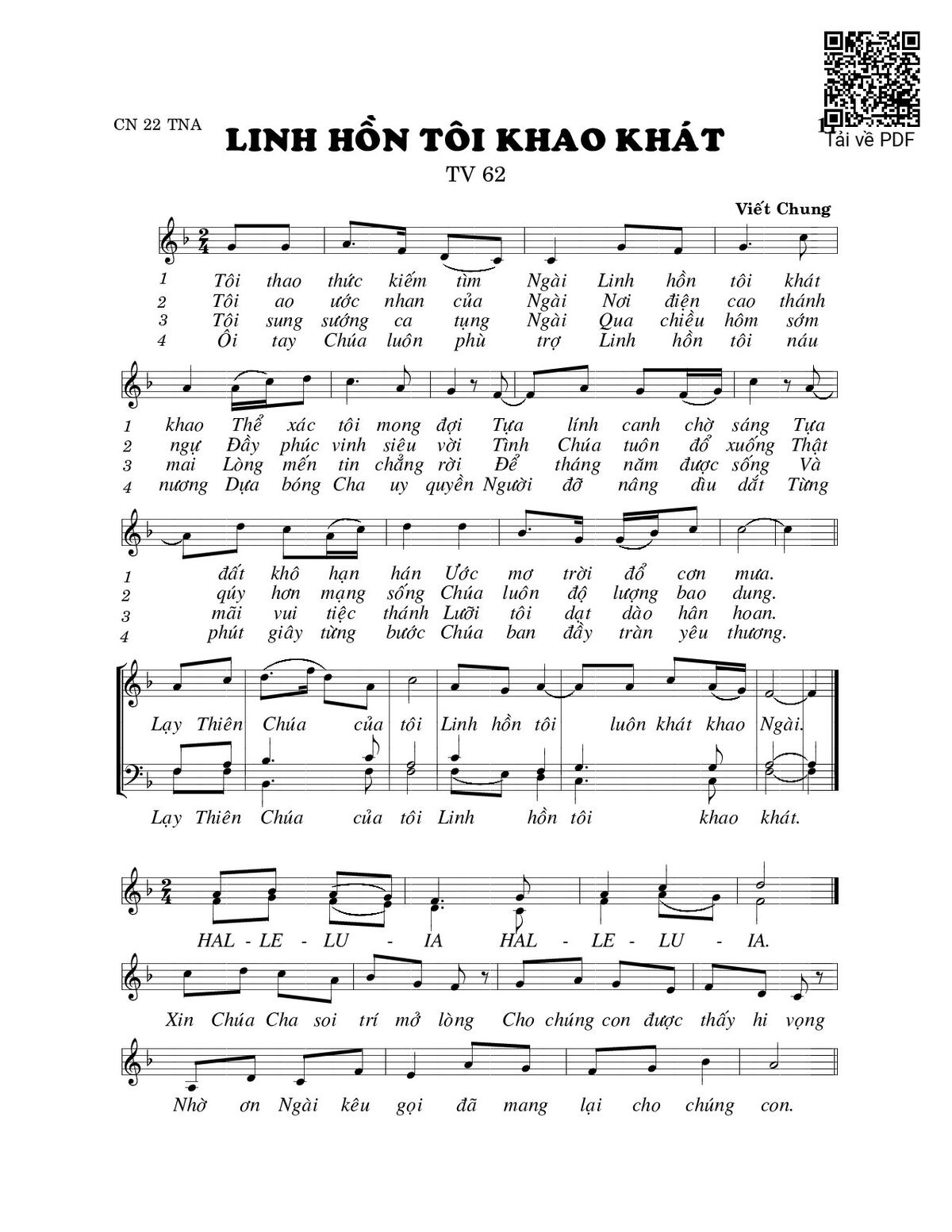 Trang 1 của Sheet nhạc PDF bài hát Linh hồn tôi khao khát (Thánh Vịnh 62) - Viết Chung