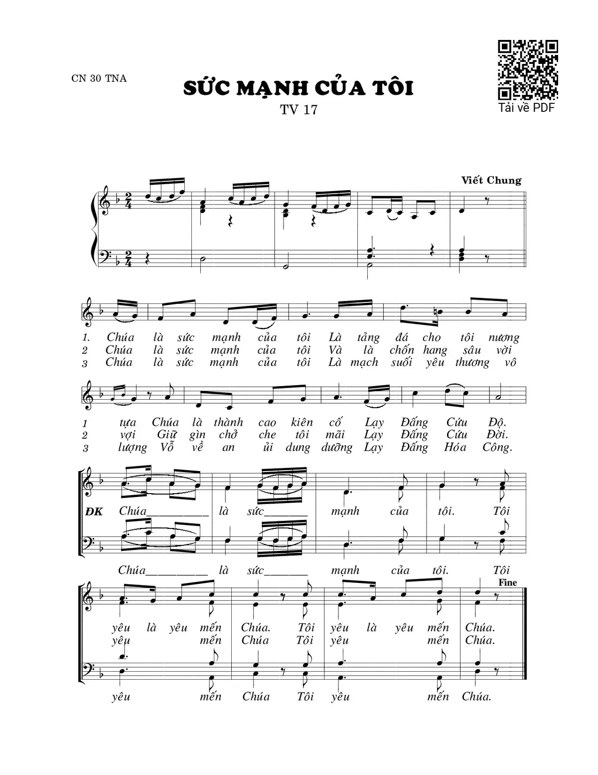 Trang 1 của Sheet nhạc PDF bài hát Sức mạnh của tôi (Thánh Vịnh 17) - Viết Chung