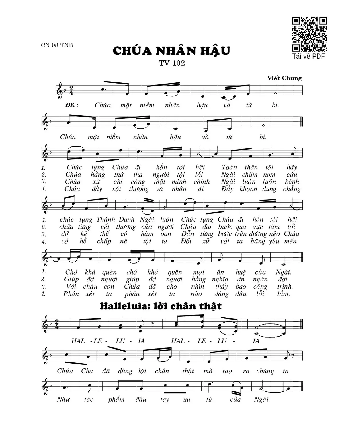 Sheet Chúa nhân hậu (Thánh Vịnh 102) PDF, hợp âm