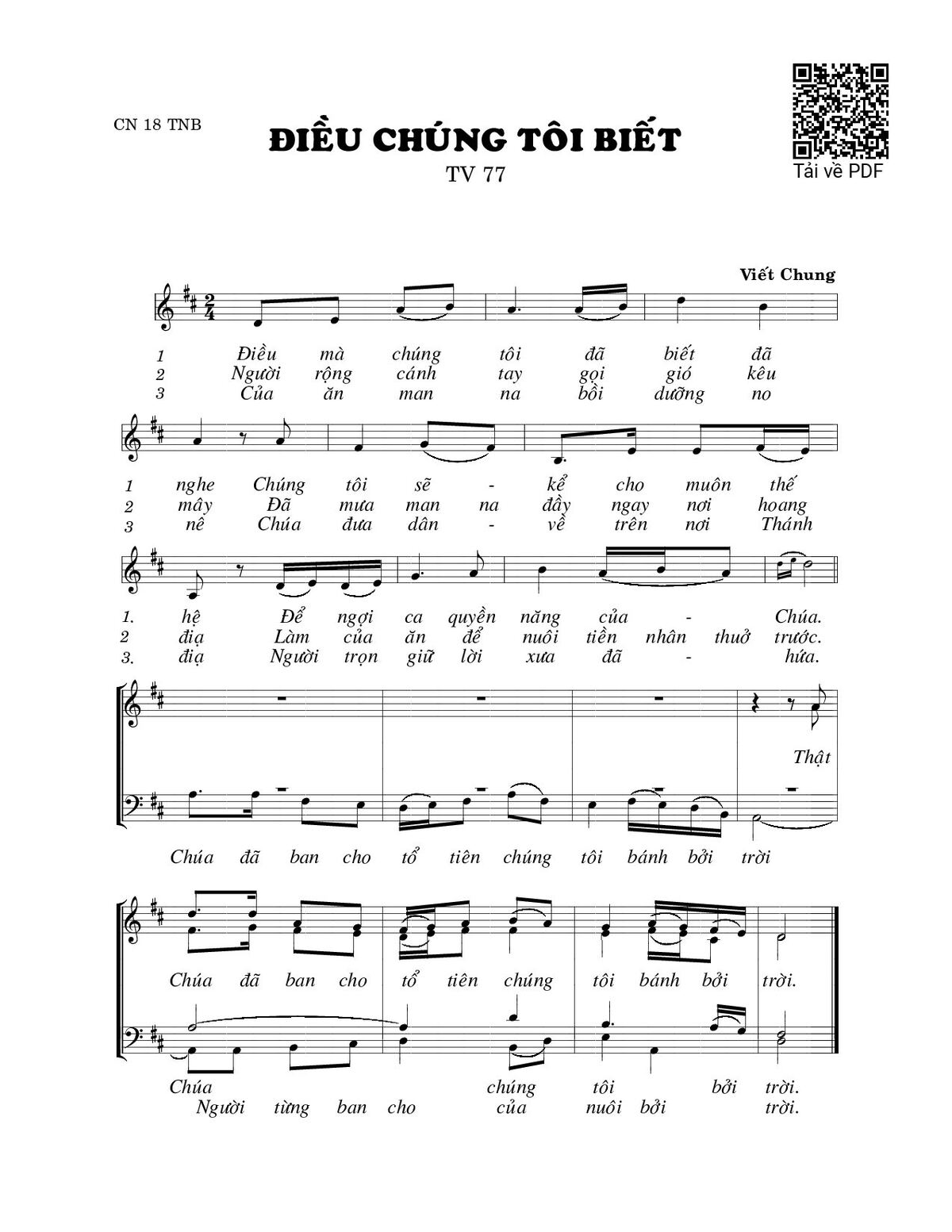 Các sheet PDF tương tự Điều chúng tôi biết (Thánh Vịnh 77):