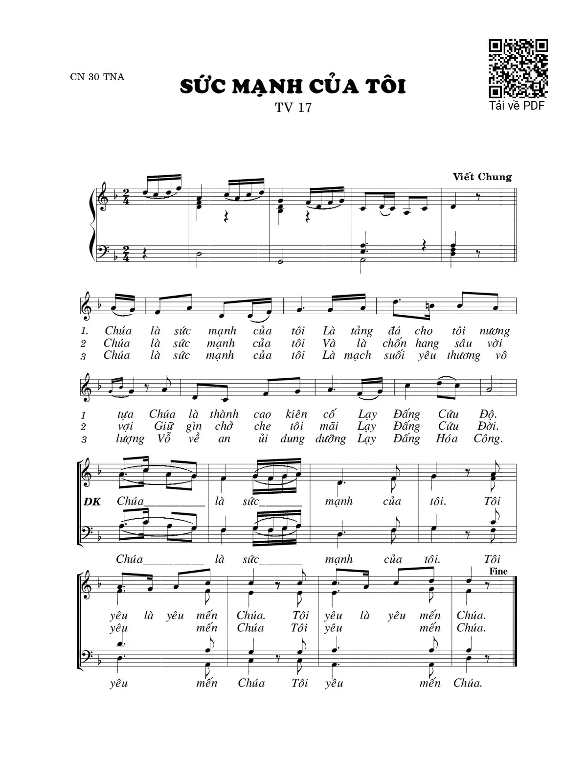 Trang 1 của Sheet nhạc PDF bài hát Sức mạnh của con (Thánh Vịnh 17) - Viết Chung