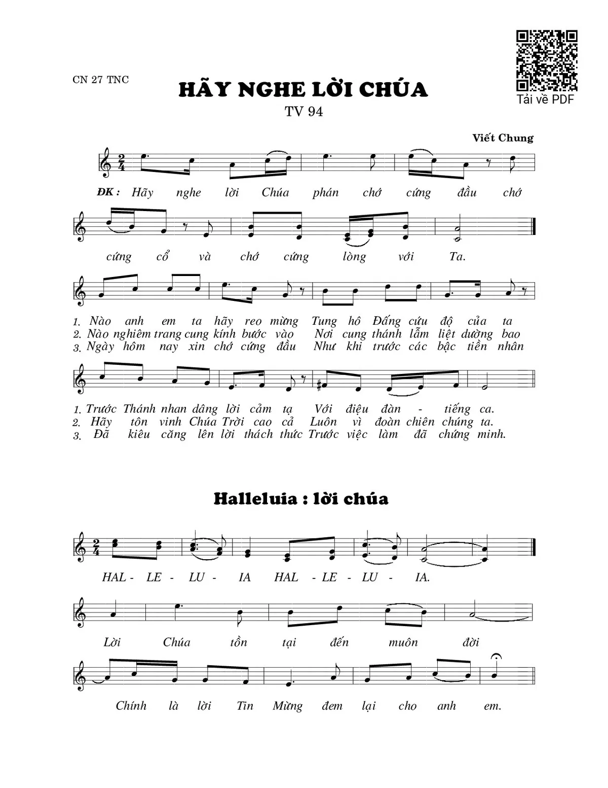 Trang 1 của Sheet nhạc PDF bài hát Hãy nghe lời Chúa (Thánh Vịnh 94) - Viết Chung