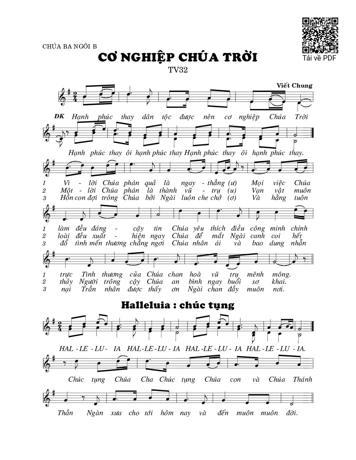 Trang 1 của Sheet nhạc PDF bài hát Cơ nghiệp Chúa Trời (Thánh Vịnh 32) - Viết Chung