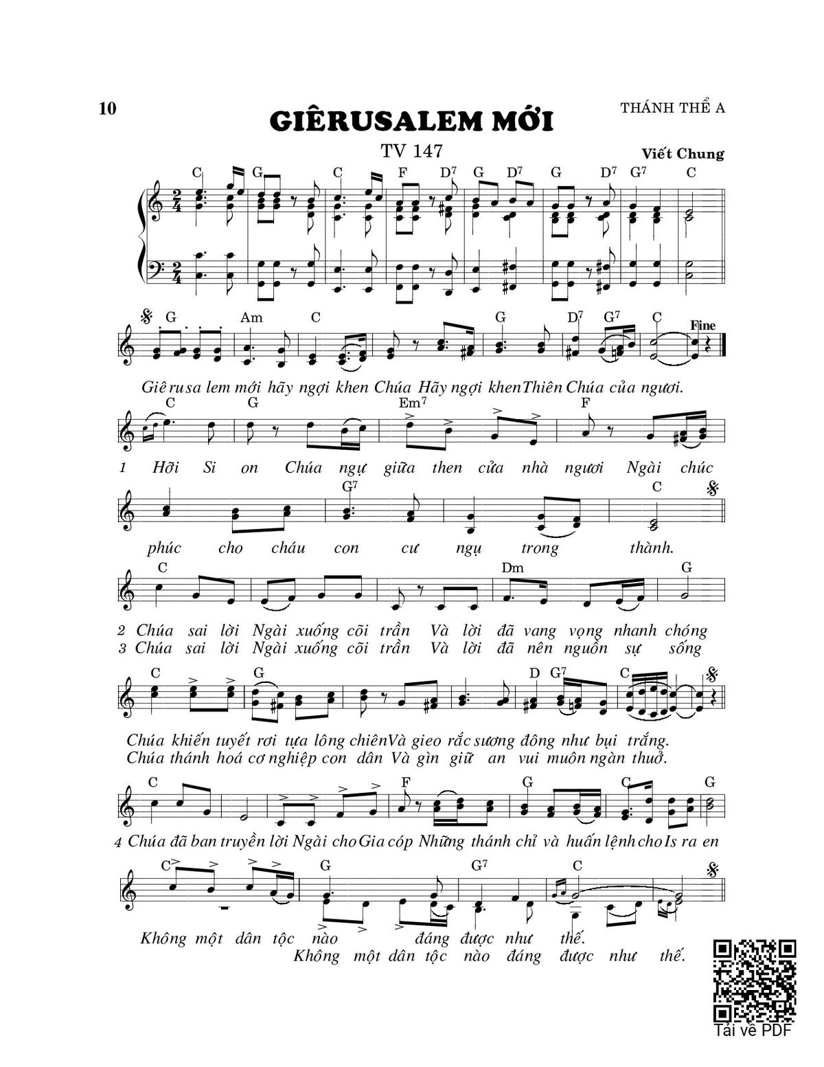 Trang 1 của Sheet nhạc PDF bài hát Giêrusalem mới (Thánh Vịnh 147) - Viết Chung