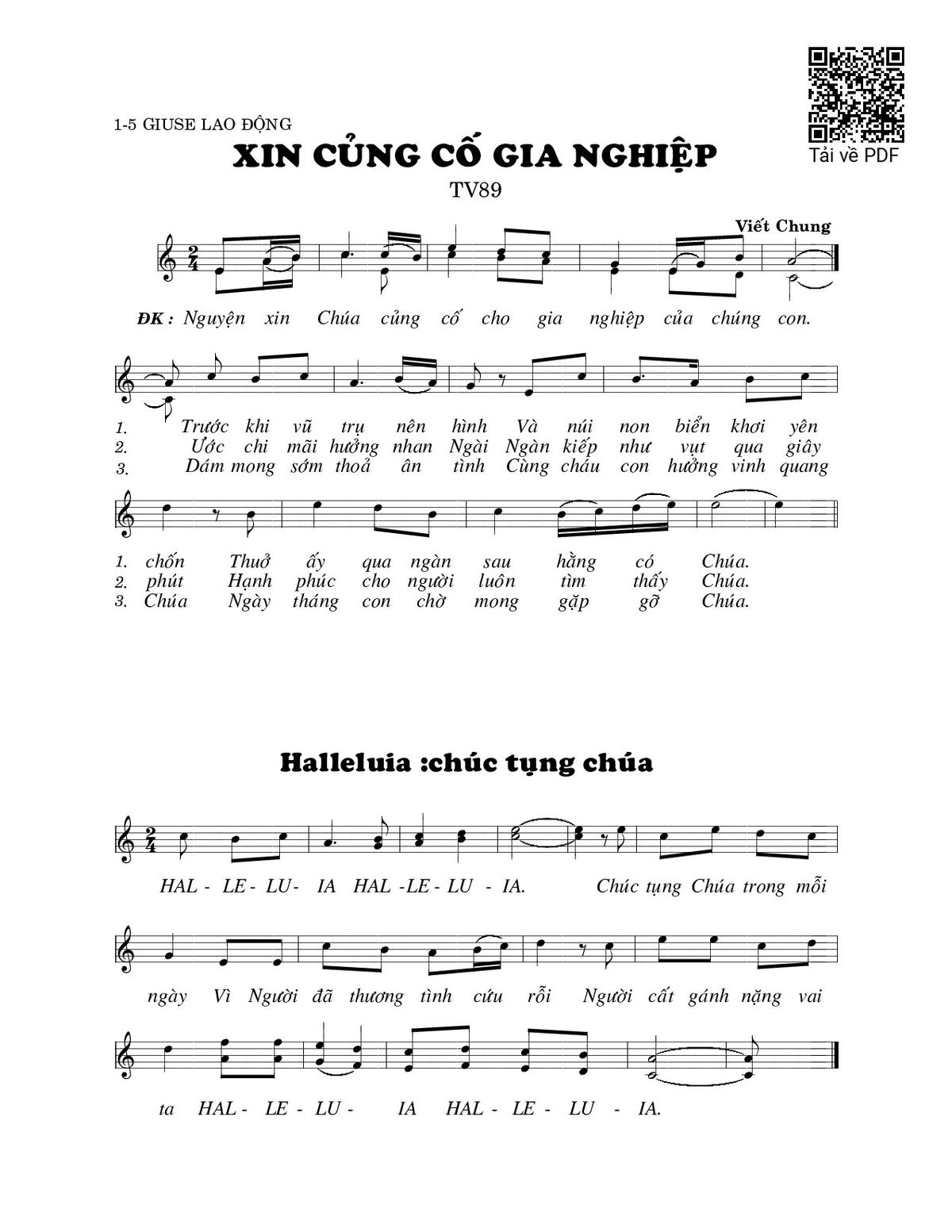 Trang 1 của Sheet nhạc PDF bài hát Xin củng cố gia nghiệp (Thánh Vịnh 89) - Viết Chung