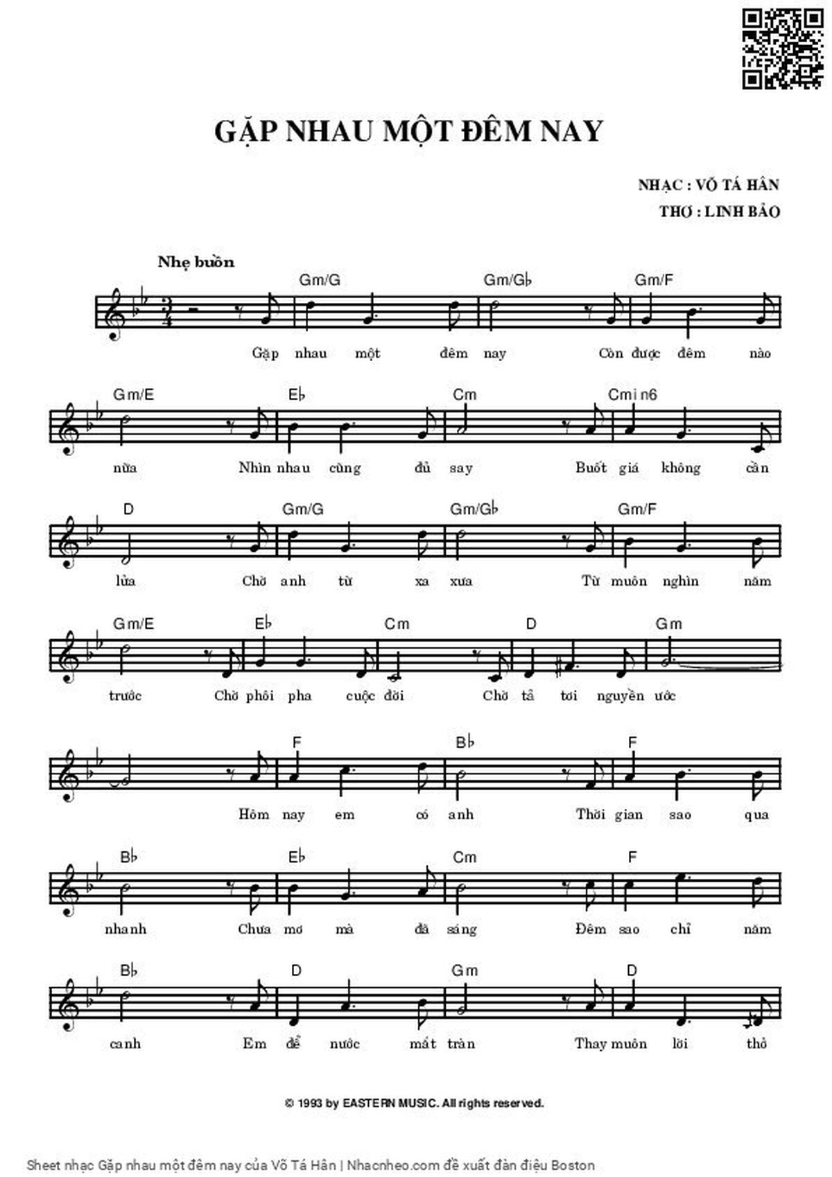 Võ Tá Hân Gặp nhau một đêm nay Còn được đêm nào nữa [PDF] [Sheet] [Lời H.A] [Mp4/Midi]
