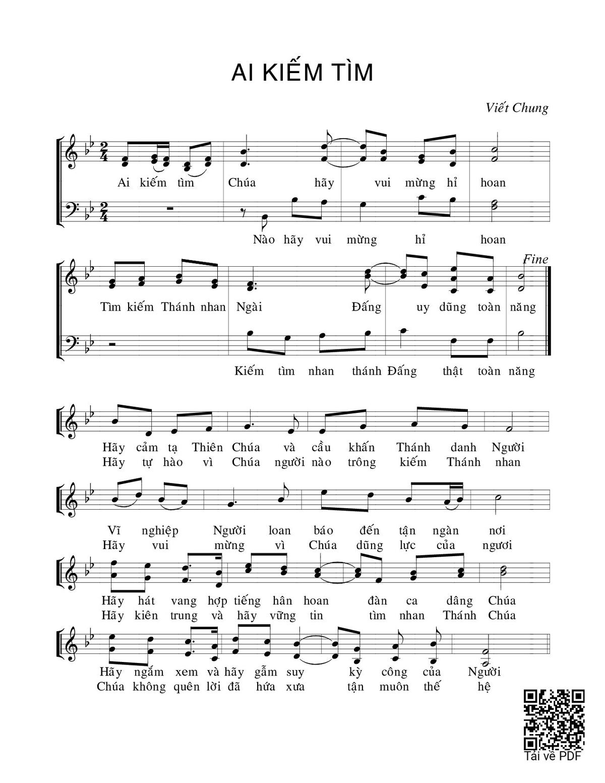 Sheet nhạc có nốt Ai kiếm tìm của nhạc sĩ Viết Chung và file PDF nốt nhạc đăng lên đây nhằm giúp các bạn xướng âm cho đúng nốt và hát thêm hay, chỉ mang tính chất tham khảo, không có mục đích thương mại. Bản quyền thuộc về tác giả và tổ chức nắm bản quyền, Truongca.com không giữ bất kỳ bản quyền của nội dung nào cả. Các bạn có thể tải về bản PDF chất lượng cao, gồm khuông nhạc có nốt với đường link file PDF bên trên.