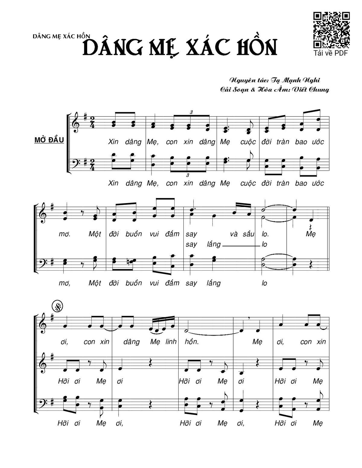 Trang 1 của Sheet nhạc PDF bài hát Dâng Mẹ xác hồn - Viết Chung