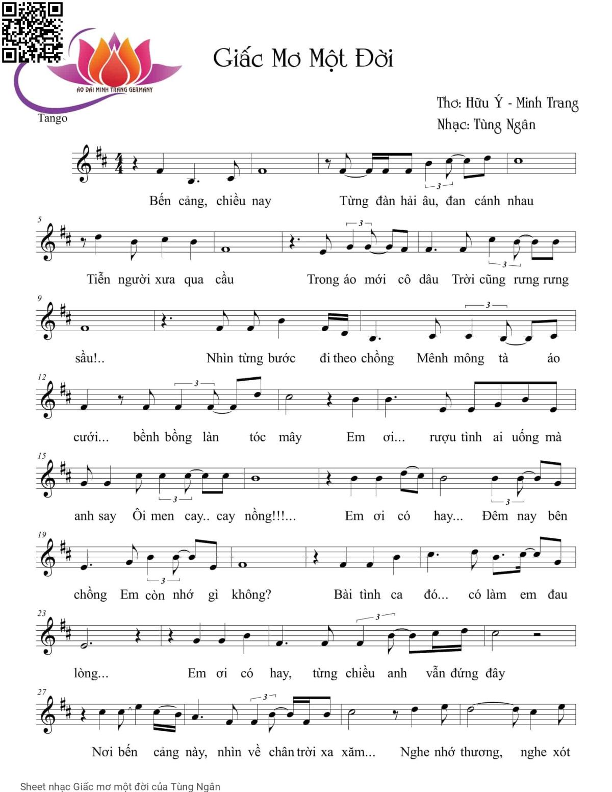 Phần nghe hát Giấc mơ một đời (Tùng Ngân) được nhúng từ Youtube, Musescore hoặc link ngoài và chịu sự kiểm soát bản quyền của bên thứ ba đó, vì vậy có thể bị xóa hoặc chèn quảng cáo bất kỳ lúc nào. Nếu bạn không nghe - xem được ca sĩ hát tức là đã bị Youtube hoặc Musescore kiểm soát.