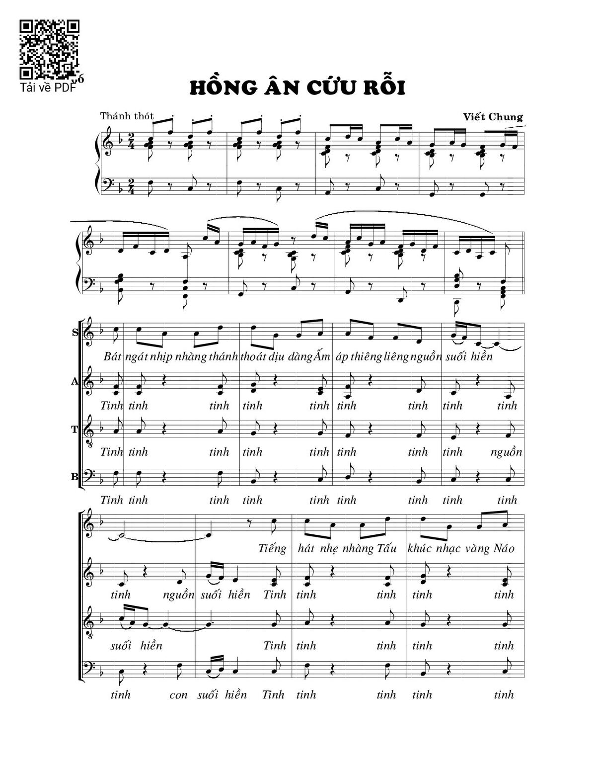Trang 1 của Sheet nhạc PDF bài hát Hồng ân cứu rỗi - Viết Chung
