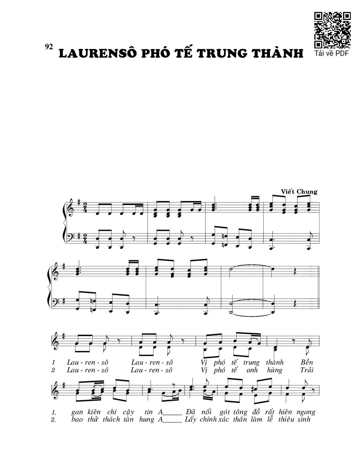 Trang 1 của Sheet nhạc PDF bài hát Laurenso phó tế trung thành - Viết Chung