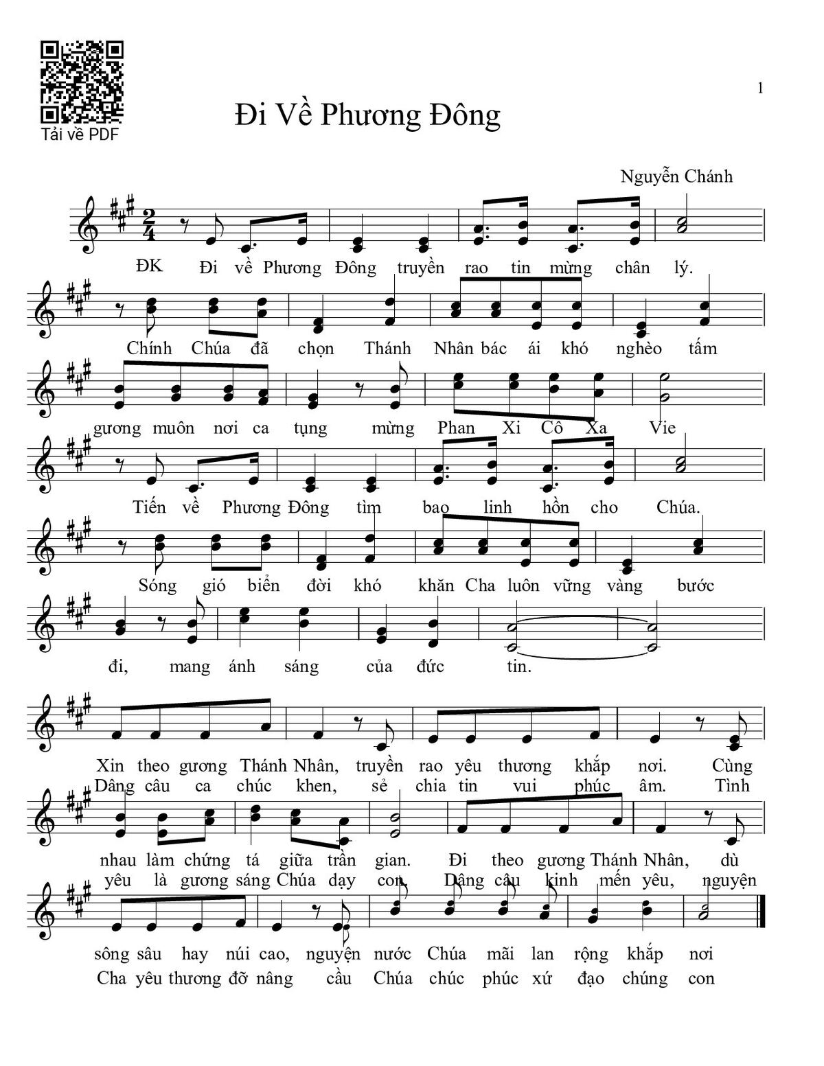 Câu đầu: ĐI VỀ PHƯƠNG ĐÔNG Nguyễn Chánh Đi về phương Đông truyền rao tin mừng chân lý