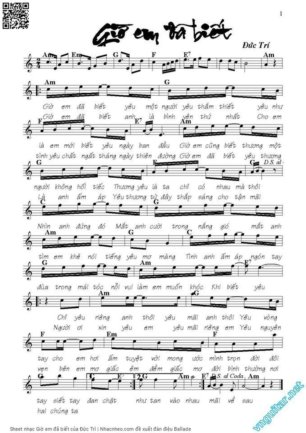 Đức Trí Giờ em đã biết yêu một người yêu thắm thiết [PDF] [Sheet] [Lời H.A] [Mp4/Midi]