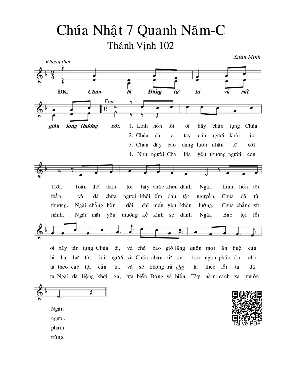 Các sheet PDF tương tự Thánh Vịnh 102, Chúa Nhật 7C Thường Niên: