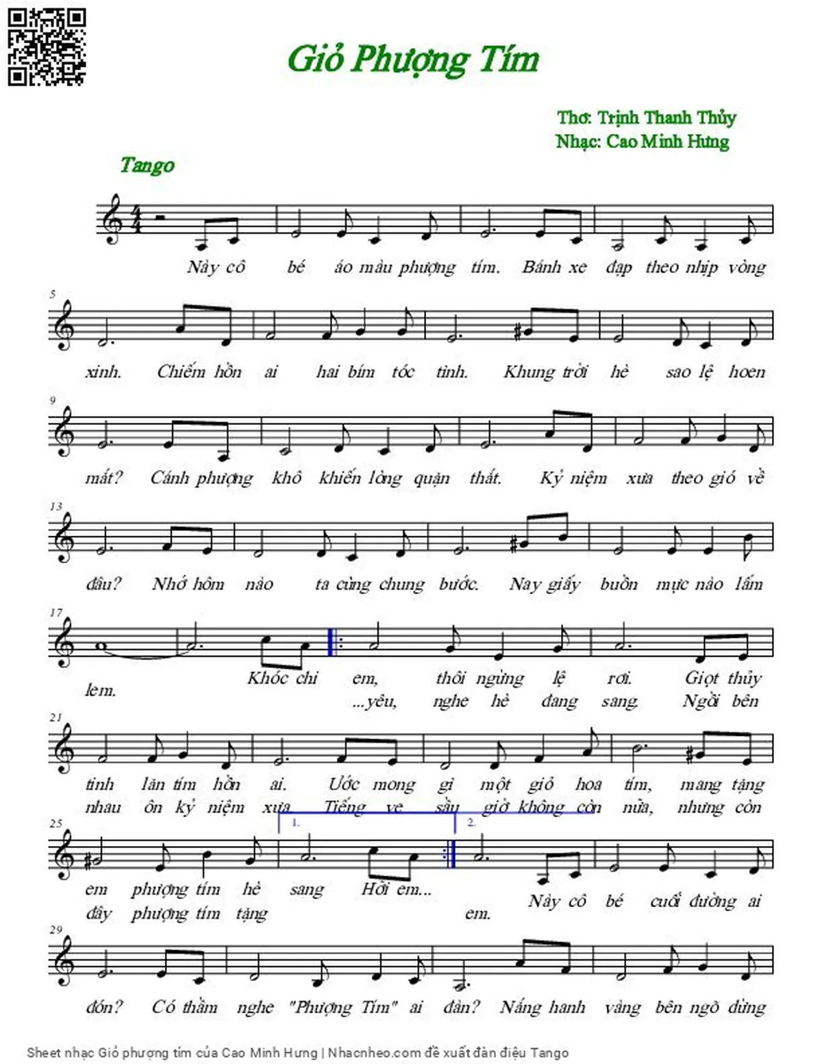 Cao Minh Hưng Này cô bé áo màu phượng tím Bánh xe đạp theo nhịp vòng xinh [PDF] [Sheet] [Lời H.A] [Mp4/Midi]