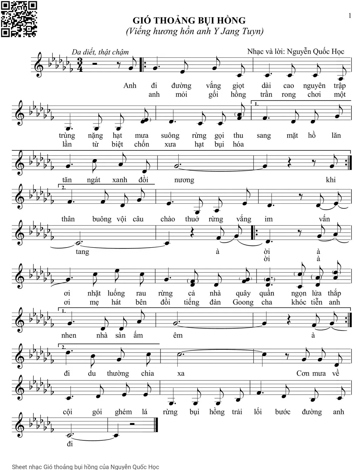 Nguyễn Quốc Học Anh đi đường vắng giọt dài Cao nguyên trập trùng nặng hạt mưa suông [PDF] [Sheet] [Lời H.A] [Mp4/Midi]