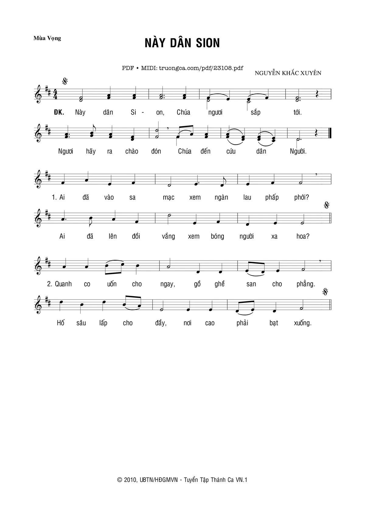 Nguyễn Khắc Xuyên ÐK Này dân Sion Chúa ngươi sắp tới Ngươi hãy ra chào đón Chúa đến cứu dân Người [PDF] [Sheet] [Lời H.A] [Mp4/Midi]