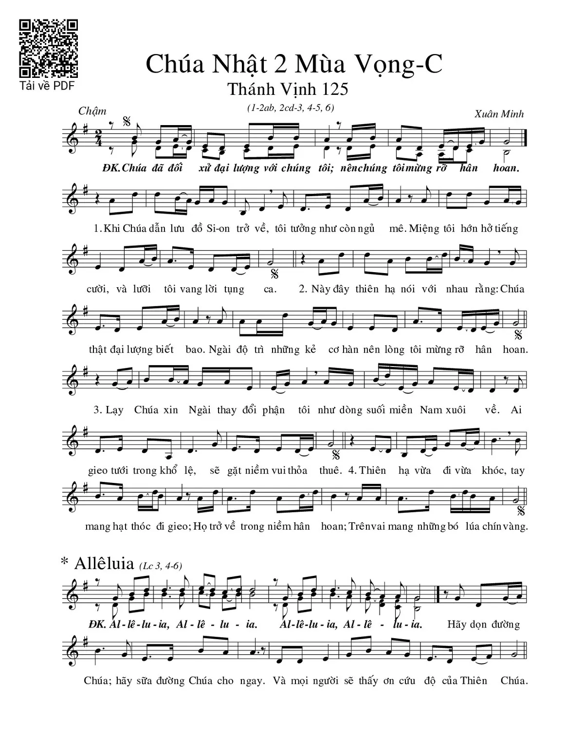 Các sheet PDF cùng tên Thánh Vịnh 125, Chúa Nhật 2C Mùa Vọng: