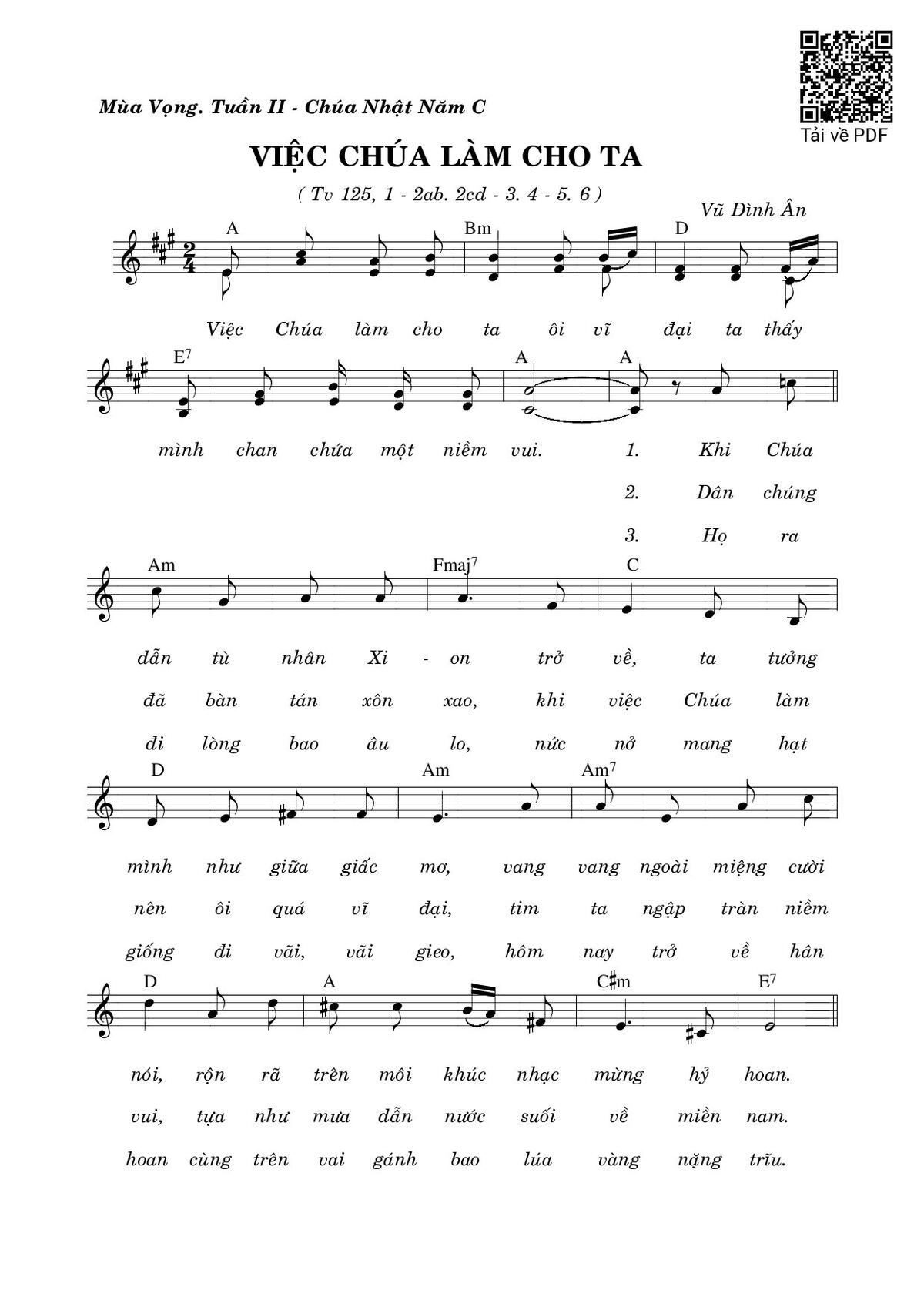 Vũ Đình Ân Chúa Nhật C Mùa Vọng Việc Chúa làm cho ta ôi vĩ đại [PDF] [Sheet] [Lời H.A] [Mp4/Midi]