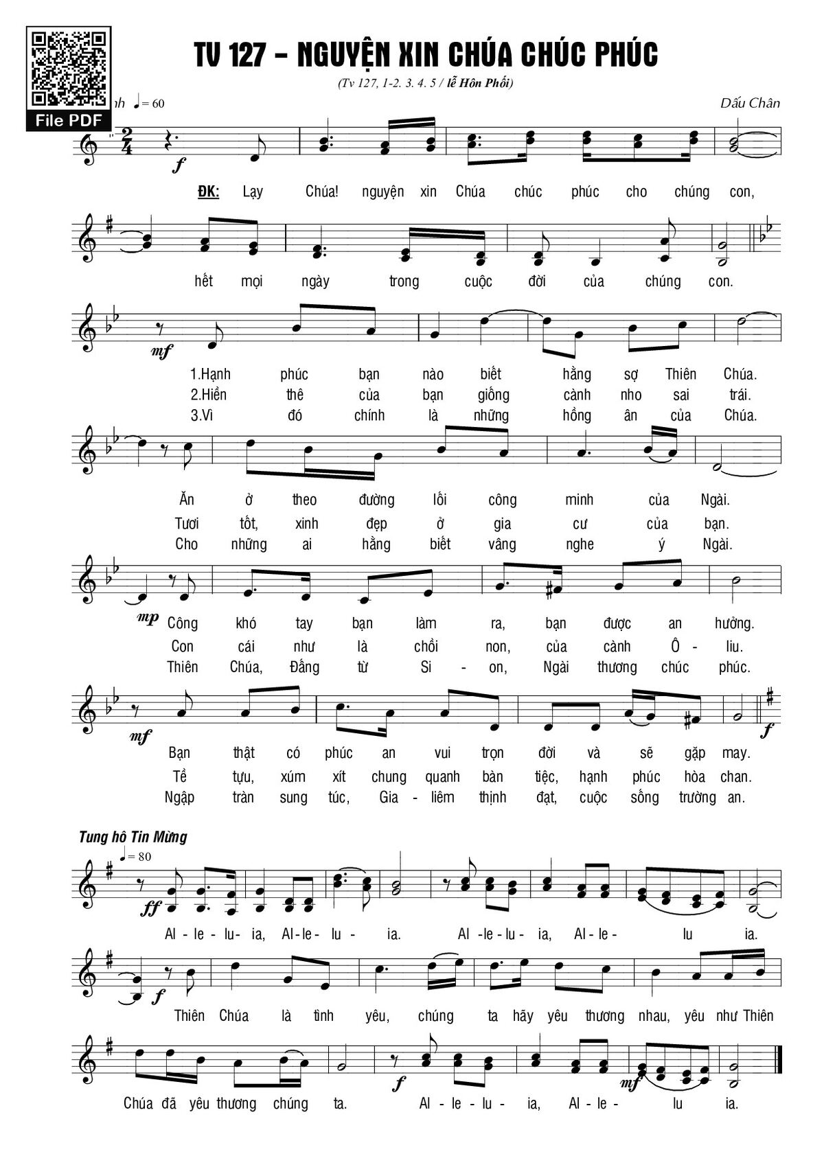 Sheet Nguyện xin Chúa chúc phúc (Thánh Vịnh 127) PDF, hợp âm