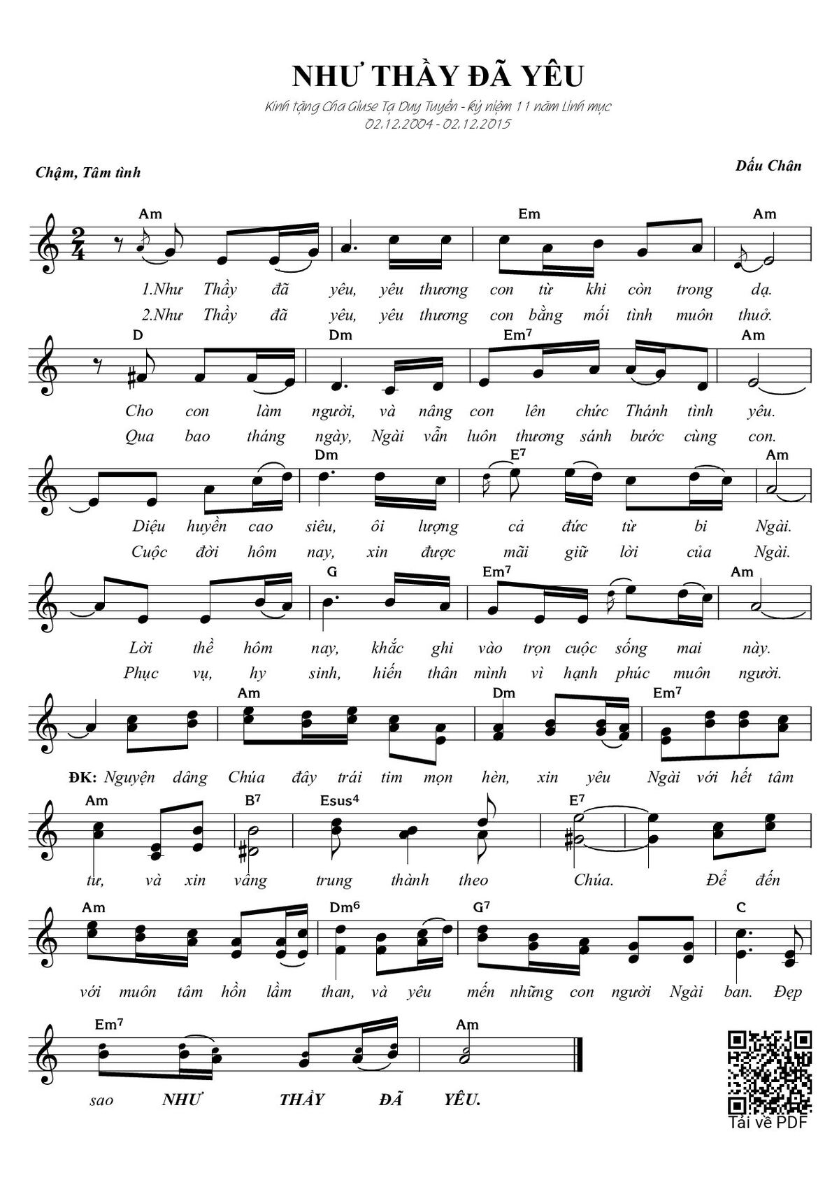 Trang 1 của Sheet nhạc PDF bài hát Như Thầy đã yêu - Dấu Chân