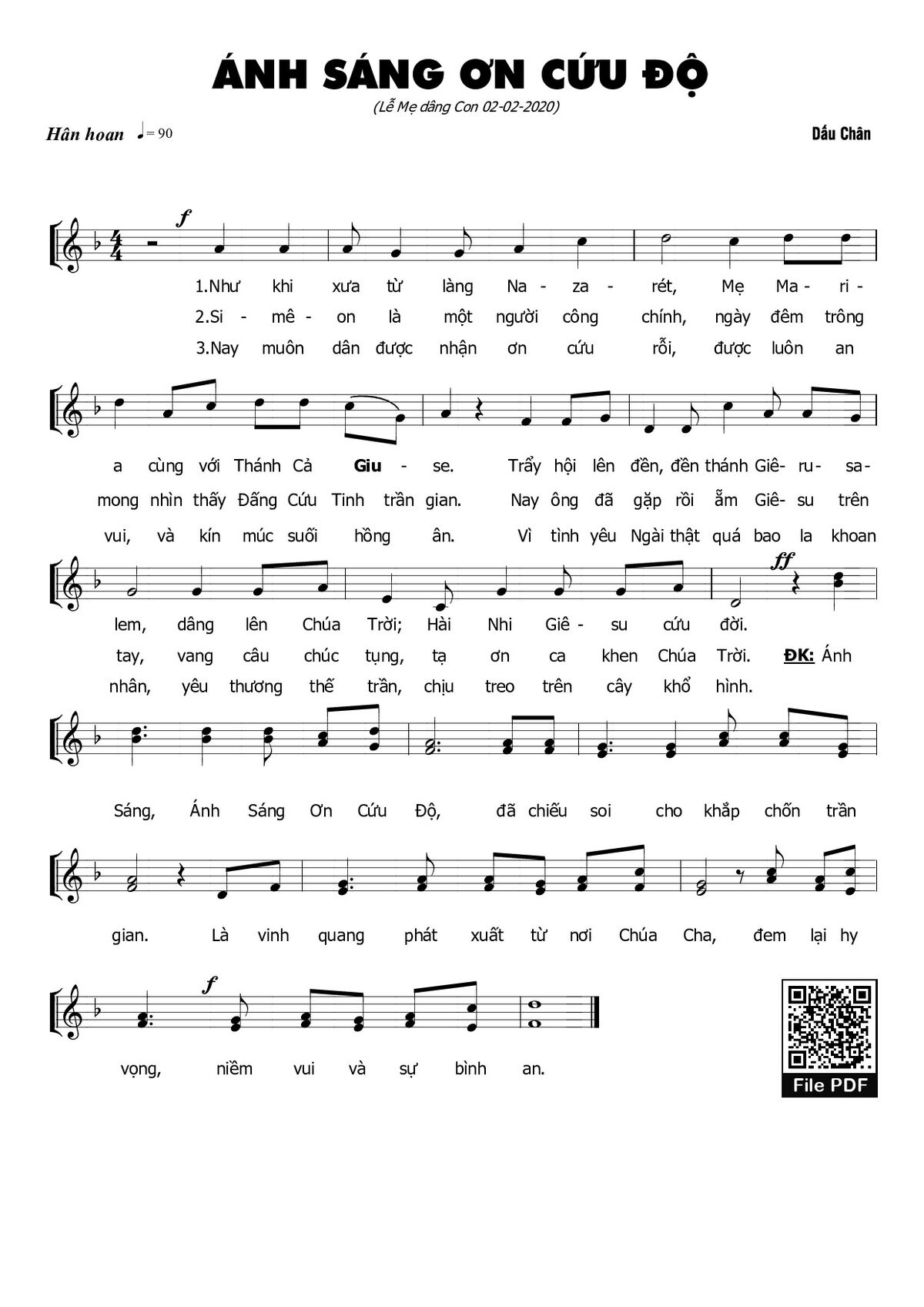 Trang 1 của Sheet nhạc PDF bài hát Ánh sáng ơn cứu độ - Dấu Chân