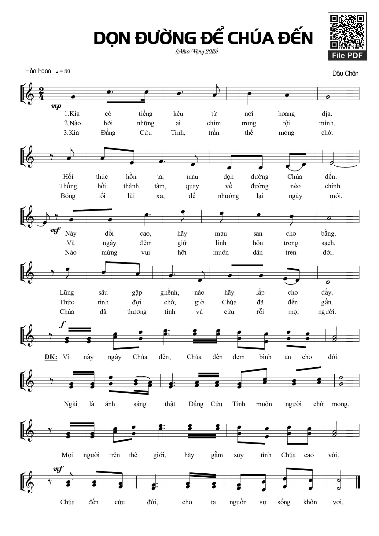 Trang 1 của Sheet nhạc PDF bài hát Dọn đường để Chúa đến - Dấu Chân