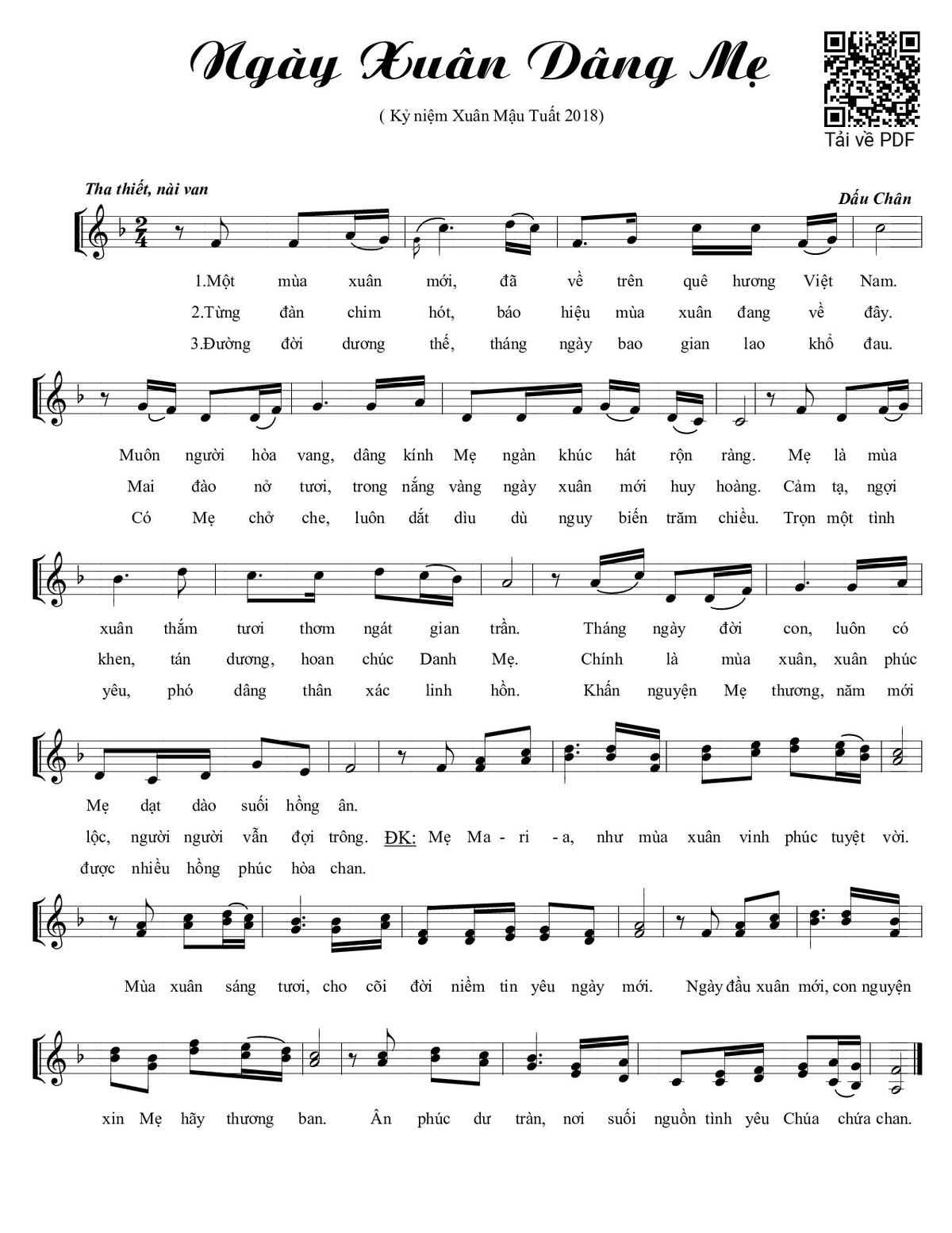 Trang 1 của Sheet nhạc PDF bài hát Ngày xuân dâng Mẹ - Dấu Chân