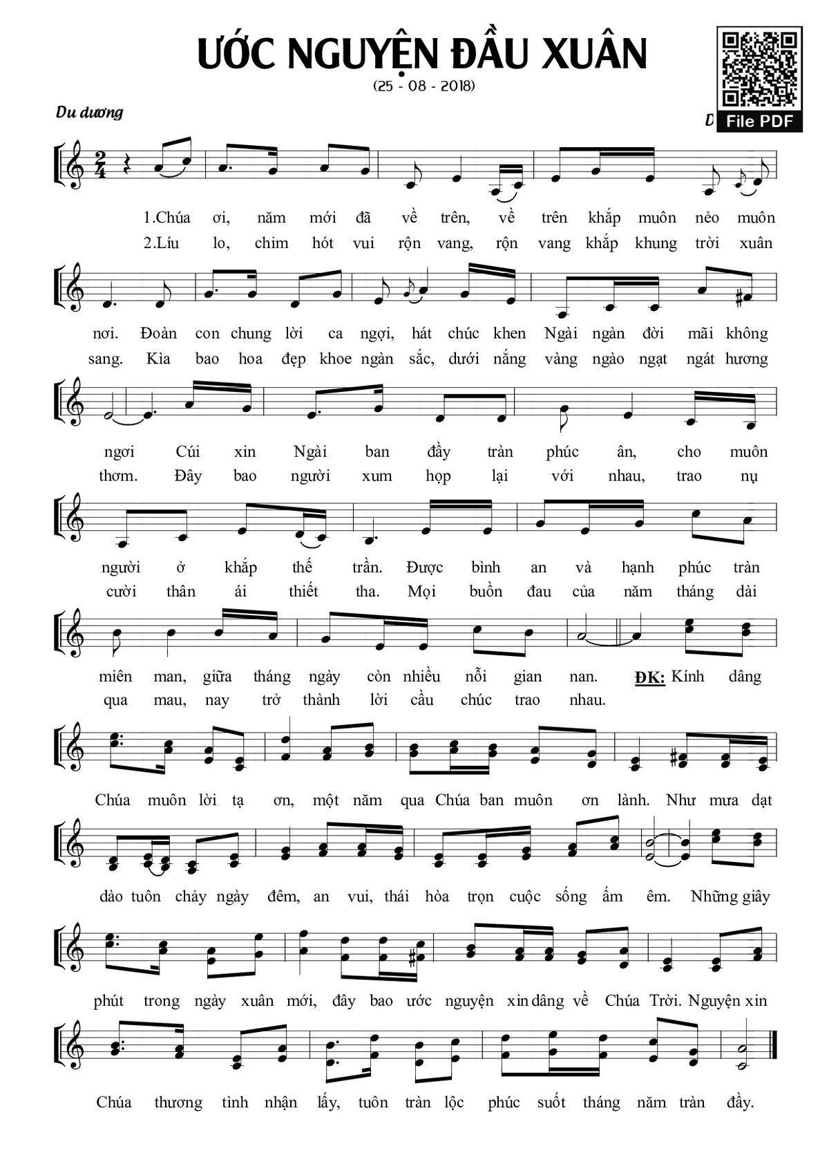 ĐK: Kính dâng Chúa muôn lời tạ ơn, một năm qua Chúa ban muôn ơn lành. Như mưa dạt dào tuôn chảy ngày đêm, an vui, thái hòa trọn cuộc sống ấm êm. Những giây phút trong ngày xuân mới, đây bao ước nguyện xin dâng về Chúa Trời. Nguyện xin Chúa thương tình nhận lấy, tuôn tràn lộc phúc suốt tháng năm tràn đầy.