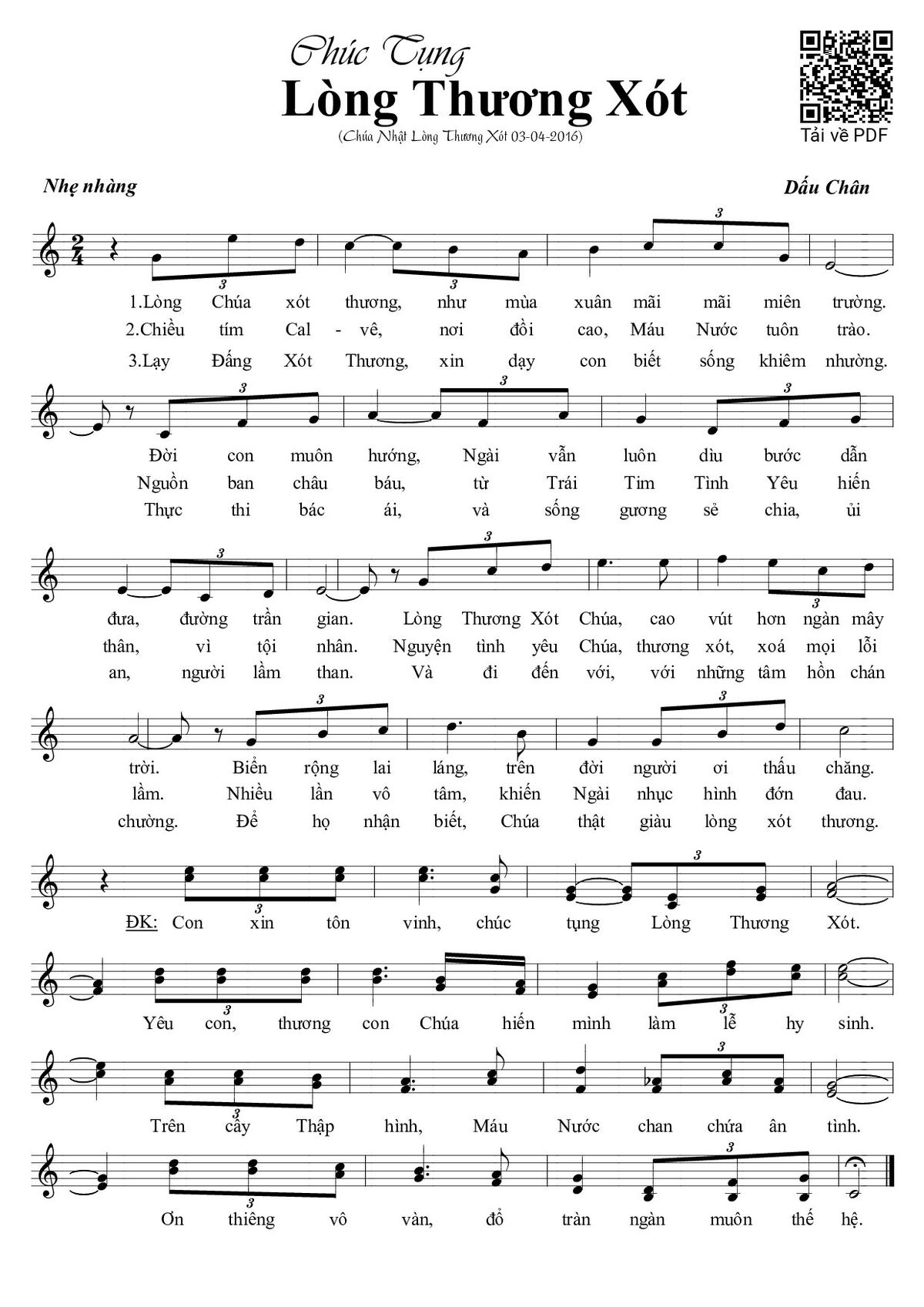 Sheet nhạc có nốt Chúc tụng Lòng thương xót của nhạc sĩ Dấu Chân và file PDF nốt nhạc đăng lên đây nhằm giúp các bạn xướng âm cho đúng nốt và hát thêm hay, chỉ mang tính chất tham khảo, không có mục đích thương mại. Bản quyền thuộc về tác giả và tổ chức nắm bản quyền, Truongca.com không giữ bất kỳ bản quyền của nội dung nào cả. Các bạn có thể tải về bản PDF chất lượng cao, gồm khuông nhạc có nốt với đường link file PDF bên trên.