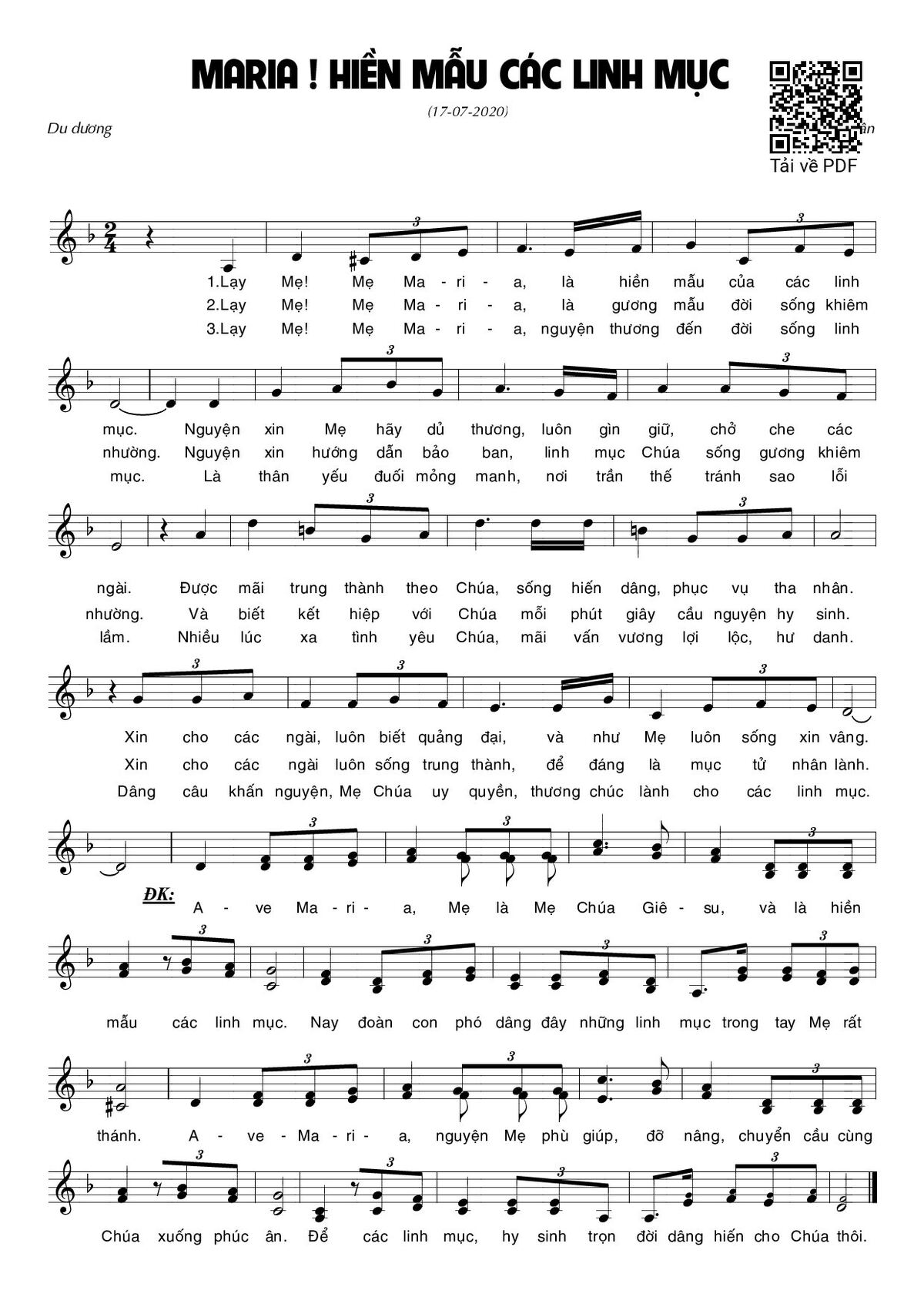 Sheet Maria! Hiền mẫu các Linh mục PDF, hợp âm
