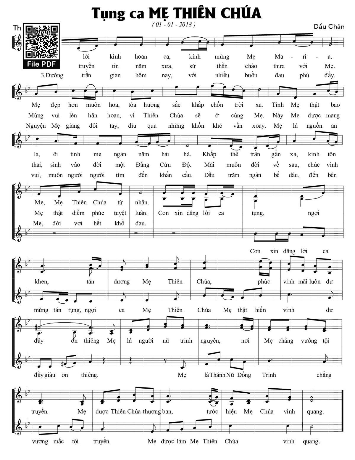 Trang 1 của Sheet nhạc PDF bài hát Tụng ca Mẹ Thiên Chúa - Dấu Chân