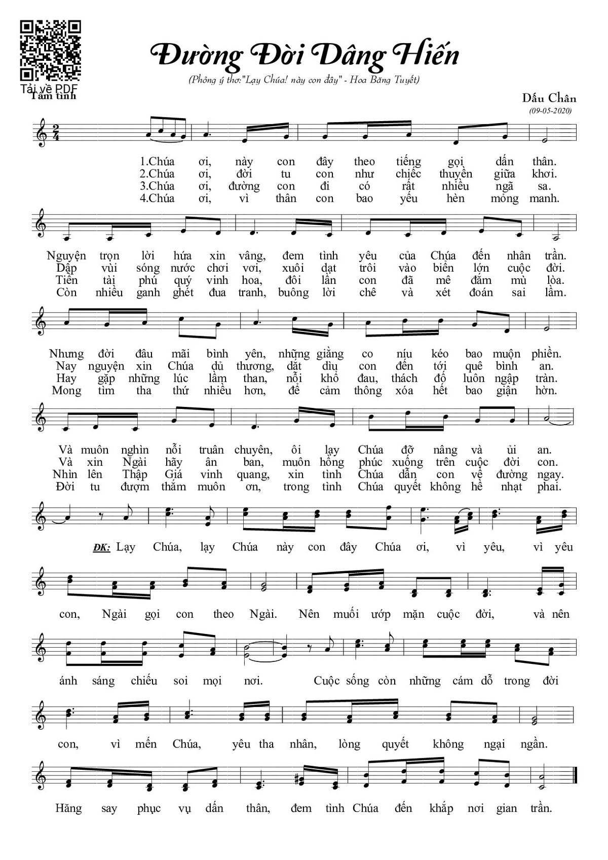 Trang 1 của Sheet nhạc PDF bài hát Đường đời dâng hiến - Dấu Chân