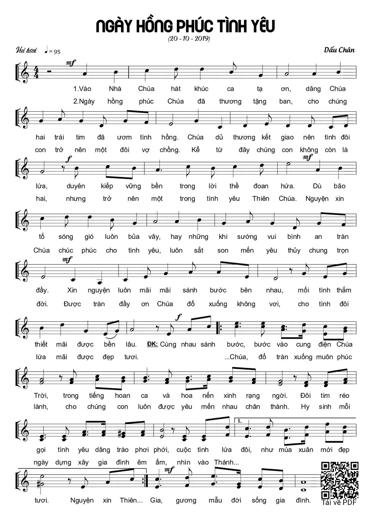 Trang 1 của Sheet nhạc PDF bài hát Ngày hồng phúc tình yêu - Dấu Chân