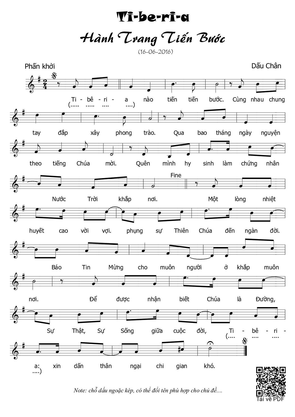 Trang 1 của Sheet nhạc PDF bài hát Tiberia Hành trang tiến bước - Dấu Chân