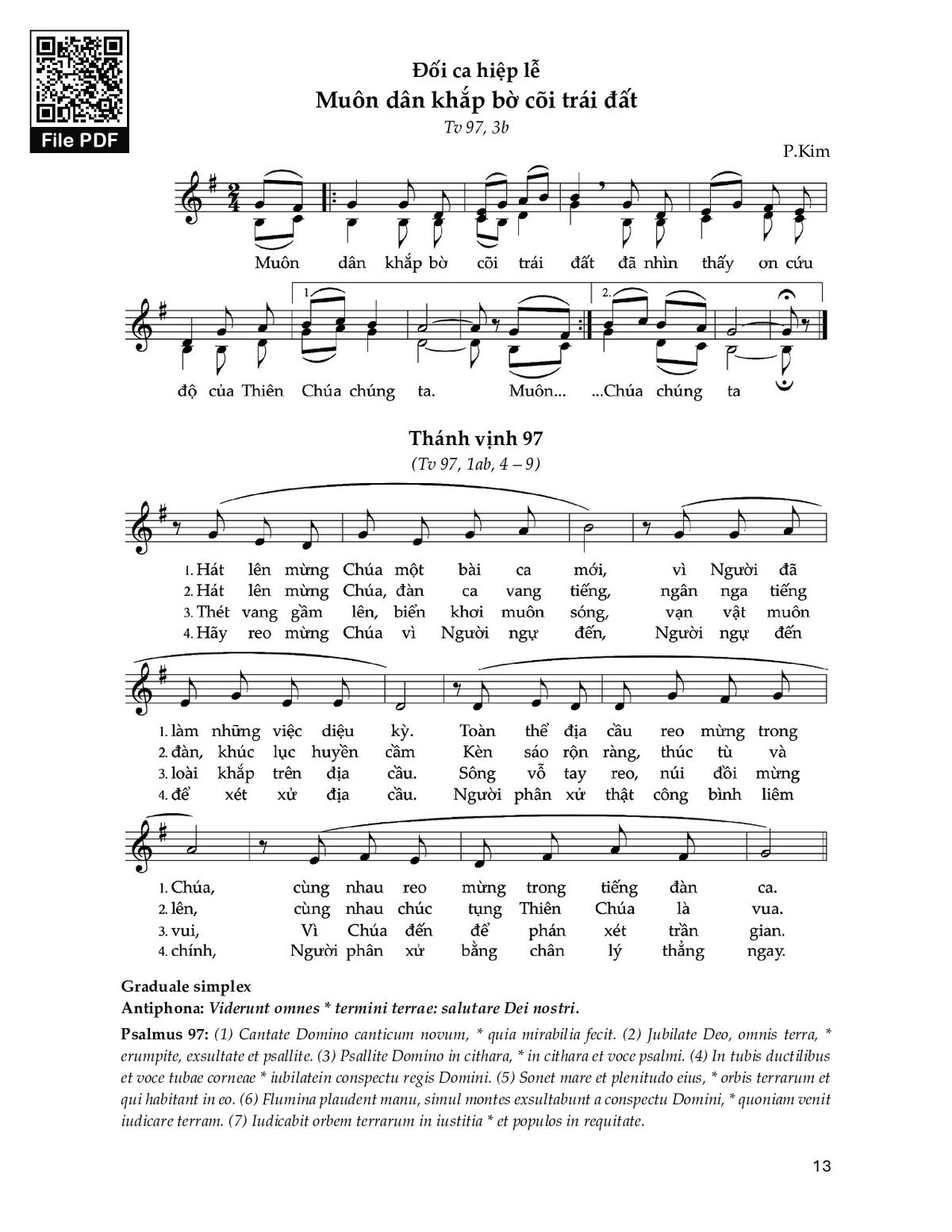 Đáp ca: Muôn dân khắp bờ cõi trái đất đã nhìn thấy ơn cứu độ của Thiên Chúa chúng ta. Muôn dân khắp bờ cõi trái đất đã nhìn thấy ơn cứu độ của Thiên Chúa chúng ta.