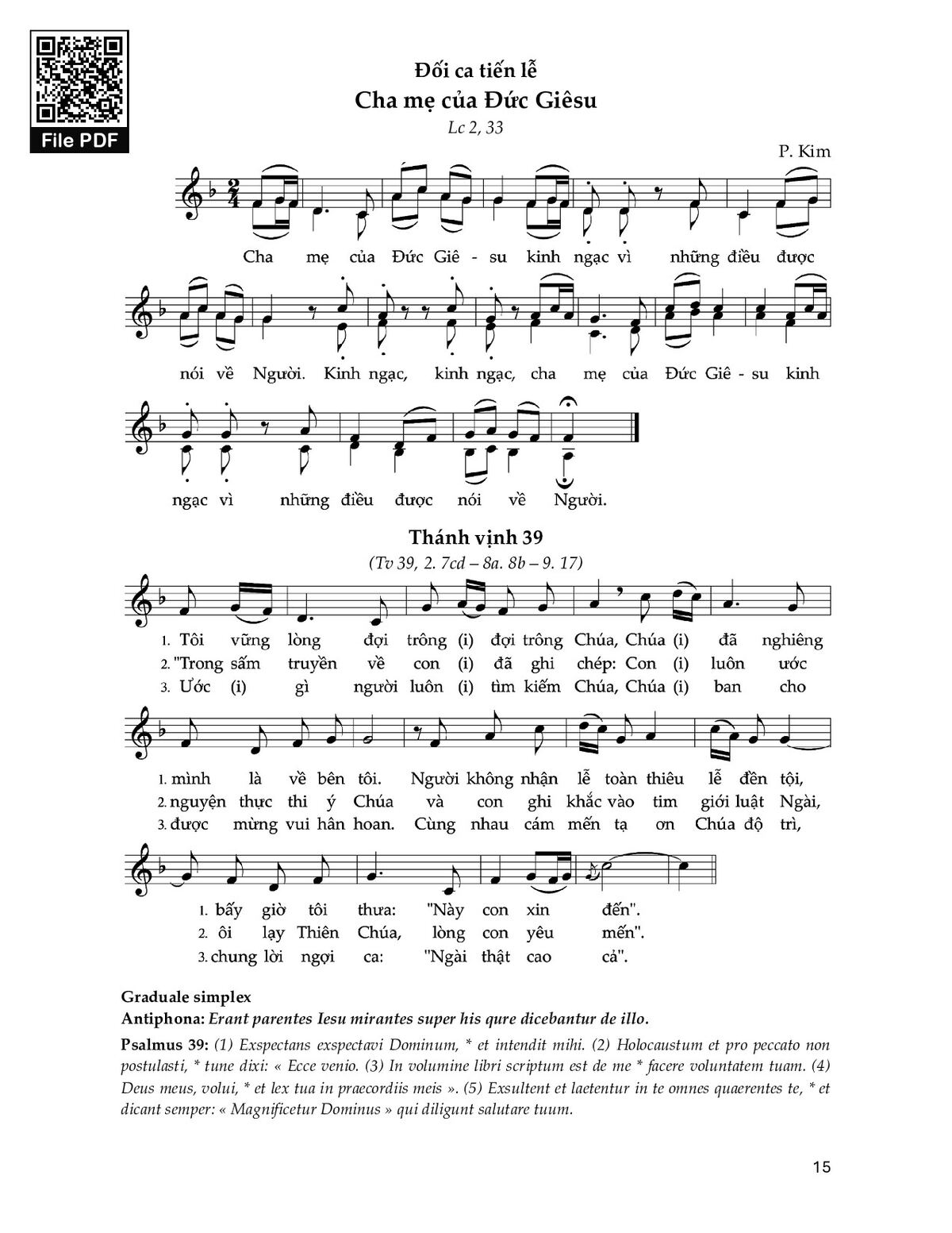 1. Tôi vững lòng đợi trông đợi trông Chúa, Chúa đã nghiêng mình là về bên tôi. Người không nhận lễ toàn thiêu lễ đền tội, bấy giờ tôi thưa: "Này con xin đến".