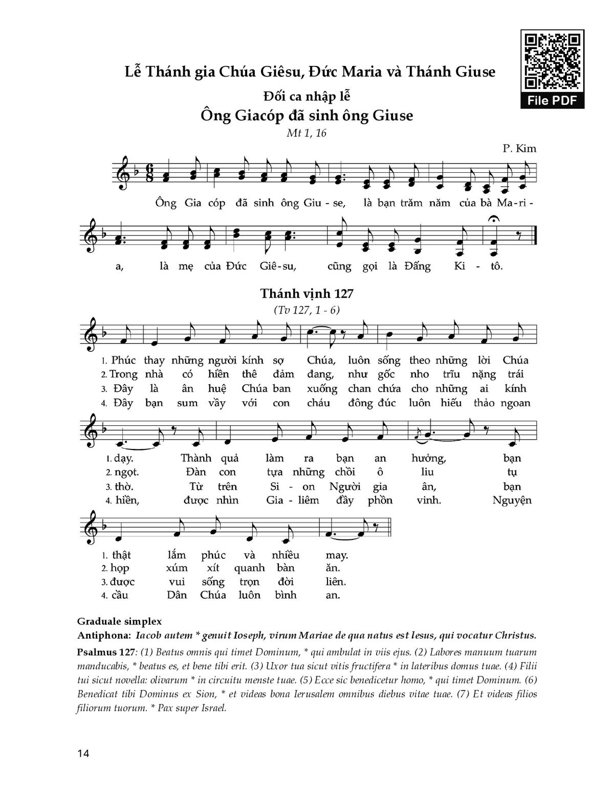 4. Đây bạn sum vầy với con cháu đông đúc luôn hiếu thảo ngoan hiền, được nhìn Gia-liêm đầy phồn vinh. Nguyện cầu Dân Chúa luôn bình an.